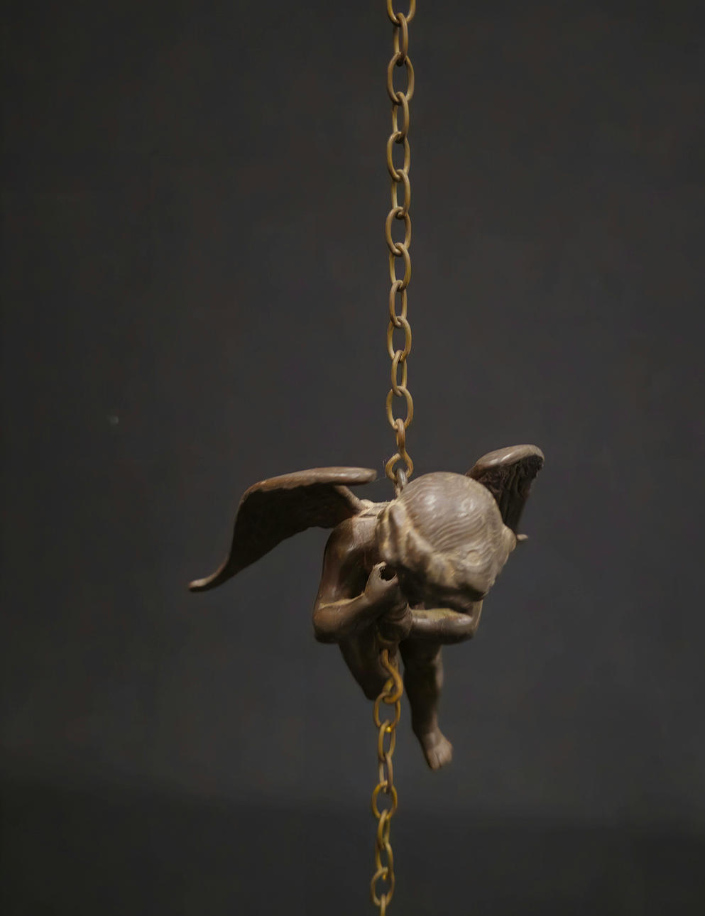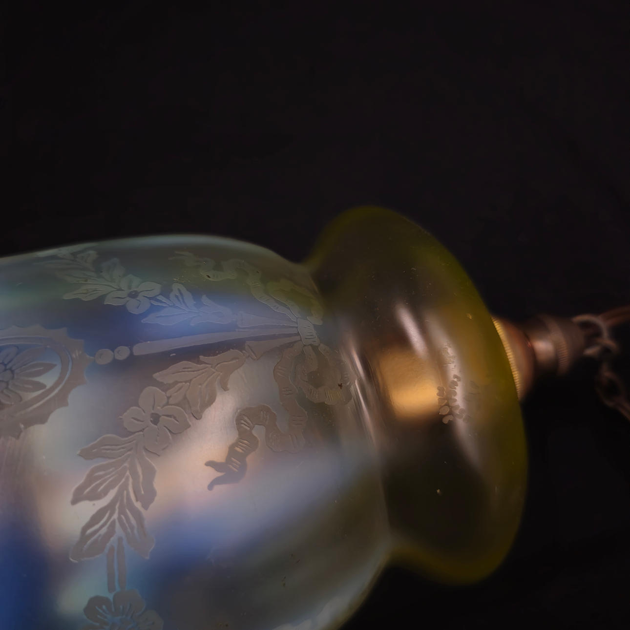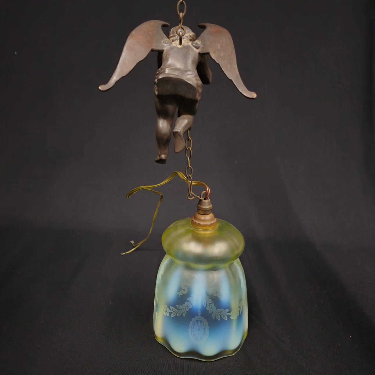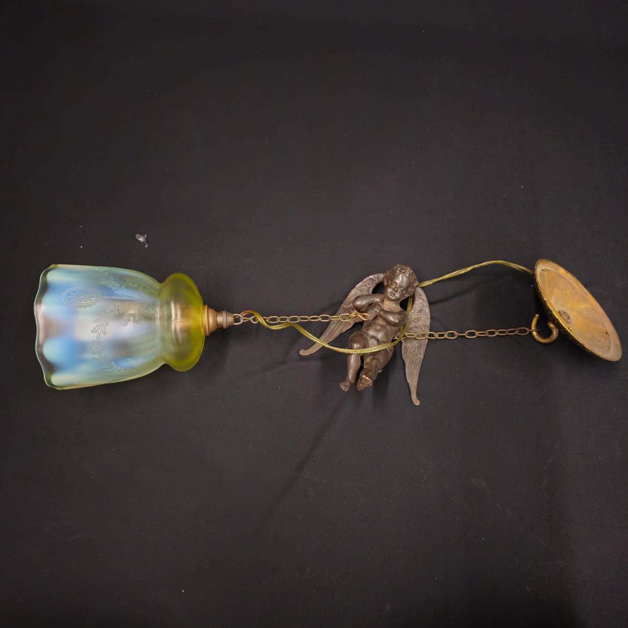 CHERUBIN CEILING LAMP WITH ENGRAVED YELLOW CRYSTAL TULIP.