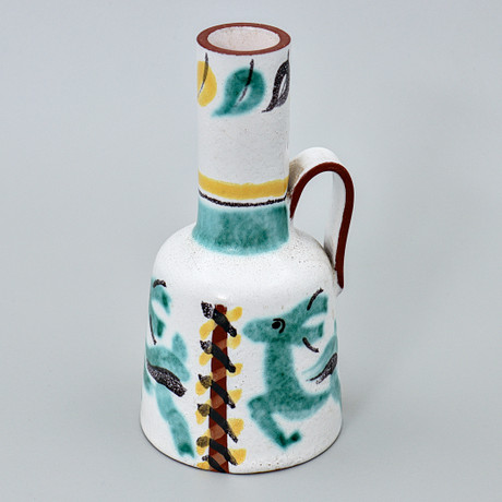 German-born Ursula Printz travelled to Sweden at the age of 17, and in 1939 she was apprenticed to Wilhelm Kåge at Gustavsberg. Due to her high artistic level, Ursula became creative director of the decoration department at Gustavsberg in 1942. She held this prestigious position until 1951, when she moved to Denmark to work at Royal Copenhagen. Here Ursula met her future husband, the Danish ceramist Jørgen Mogensen, who worked at the stoneware workshop. Ursula opened her own ceramics studio in 1953 and was joined by Jørgen from the mid-1960s.