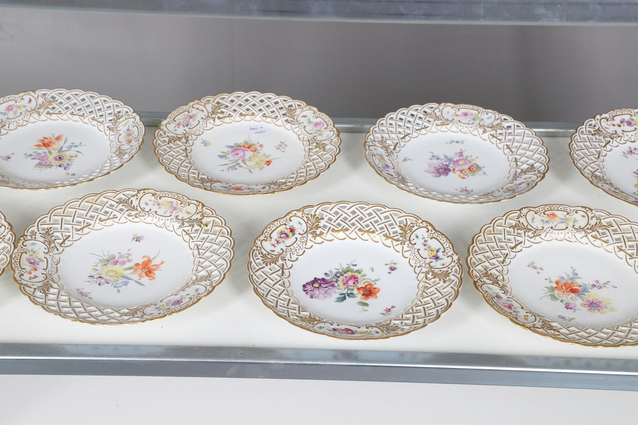 Featuring 9 dessert plates and 4 compotes (diameter 22.5cm). Together with 7 Limoges dessert plates (diameter 22cm). (20).