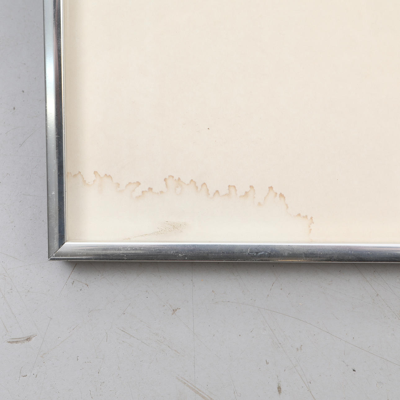 Not examined out of frame, water damage to passepartout.