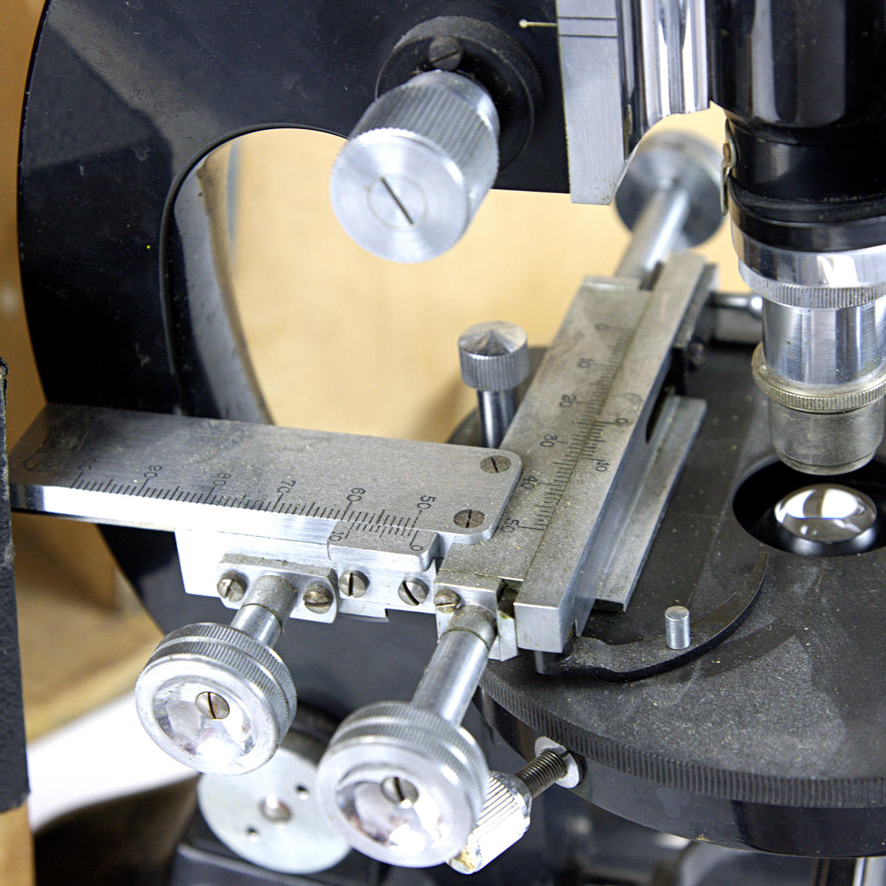 Schatull, approx. 27 x 19 x 40 cm Microscope, height 35 cm, 14 x 18 cm.