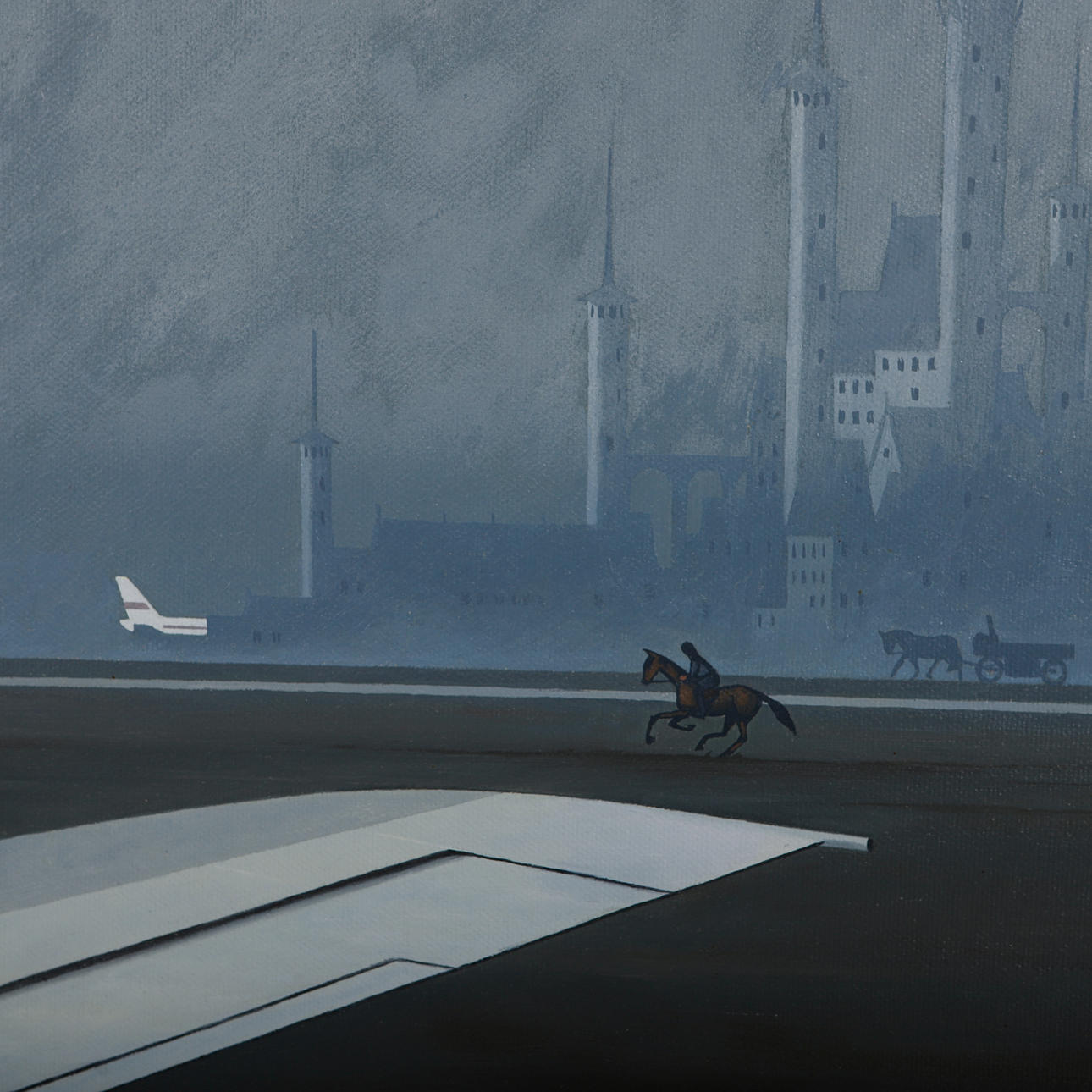 PETER CORNÉER. “Stopover, Boeing 737", oil on canvas, signed and dated 87.