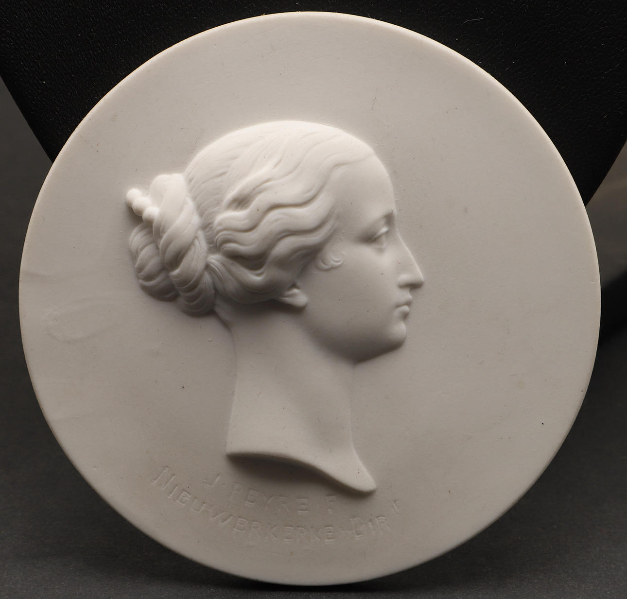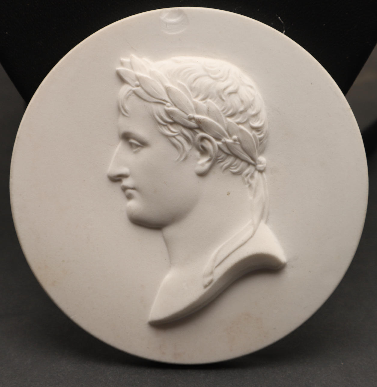 Two Sevres portrait roundels of Napoleon and his daughter in law 'Eugenie'. With printed and incised marks and with lettering under the portraits (J Peyre.F, and Nieuwerkerkere D). 8cms diameter.