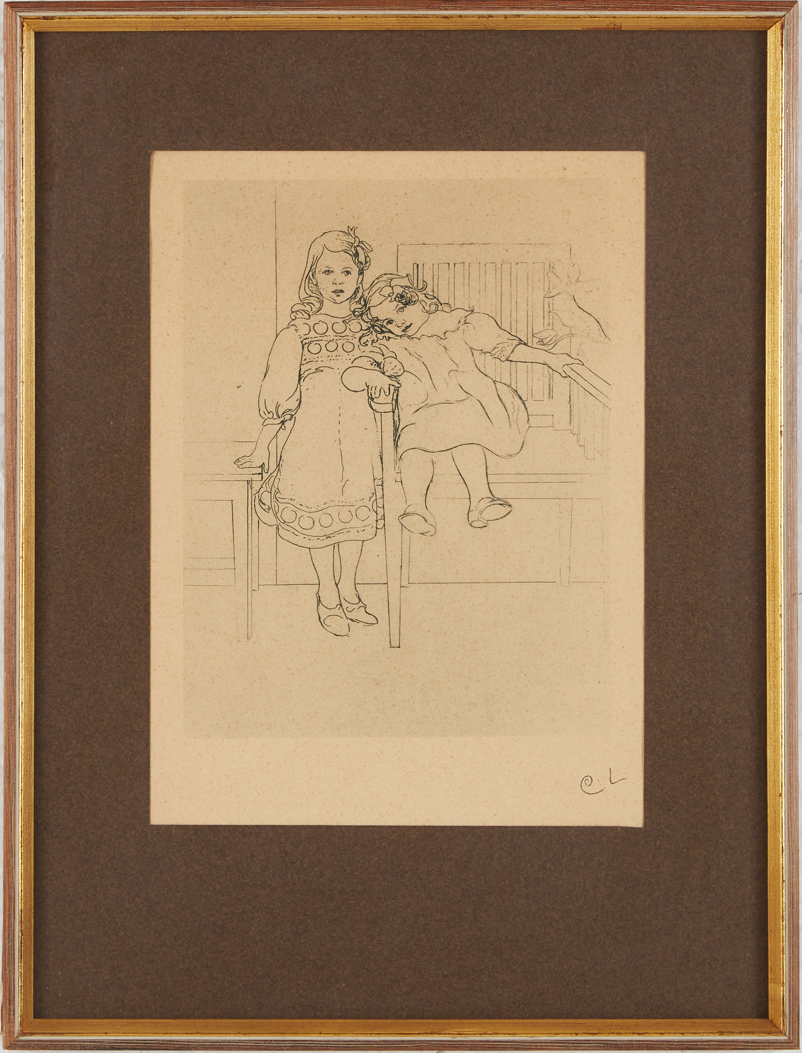 4419459. CARL LARSSON. “Two sisters”, etching, monogram signed.