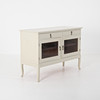 Serving sideboard, double glass doors, shelves, 2 lockable drawers. Antique/light gray. Glass with curtain effect. Sweden 1920s