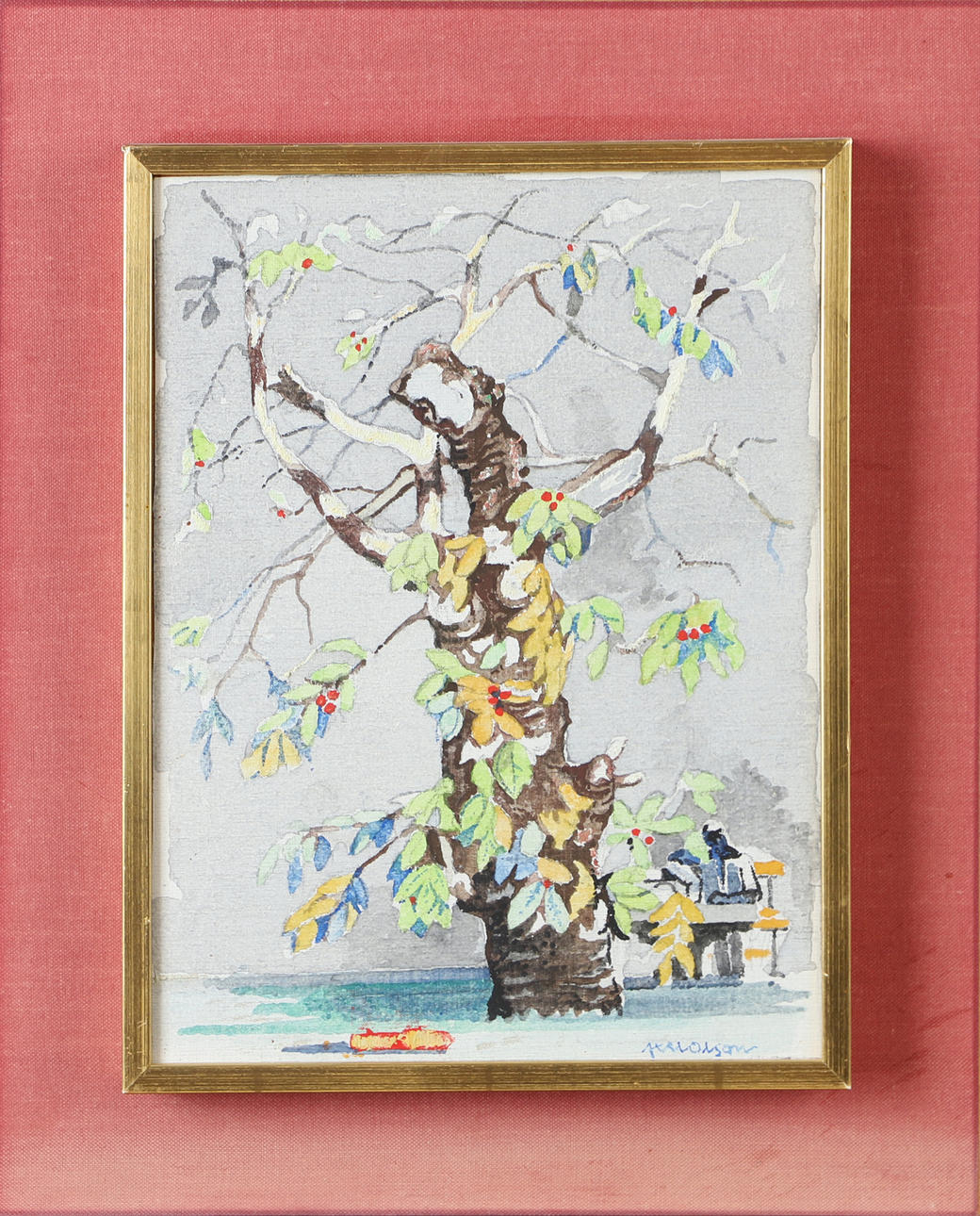 AXEL OLSON. “Fruit Tree II”, mixed media, signed.