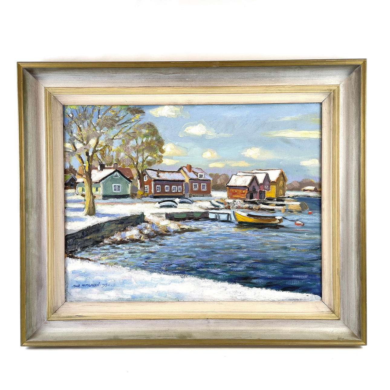 Oil on panel with archipelago motif in wooden frame. Signed “Olle Almgreen” & dated 1951.