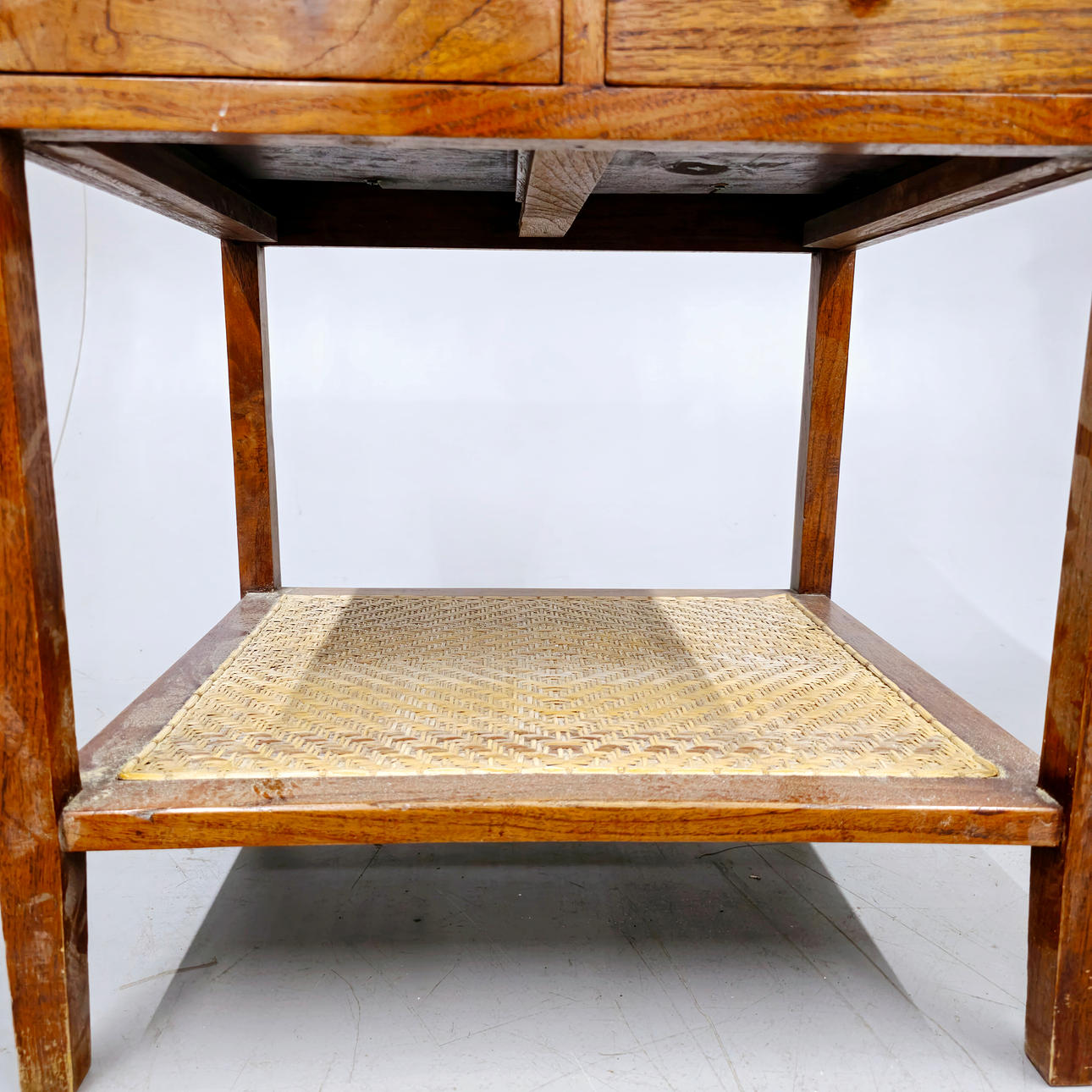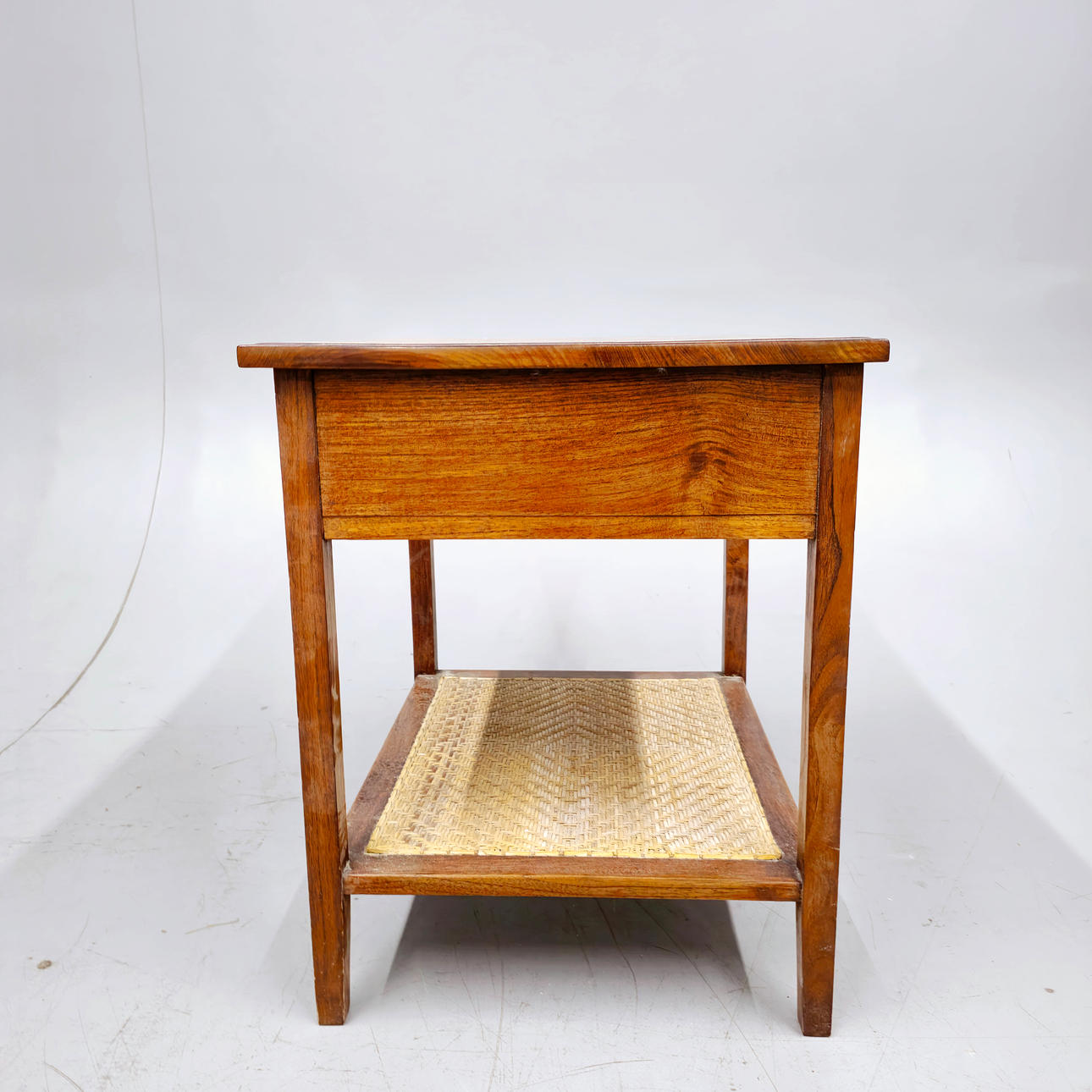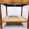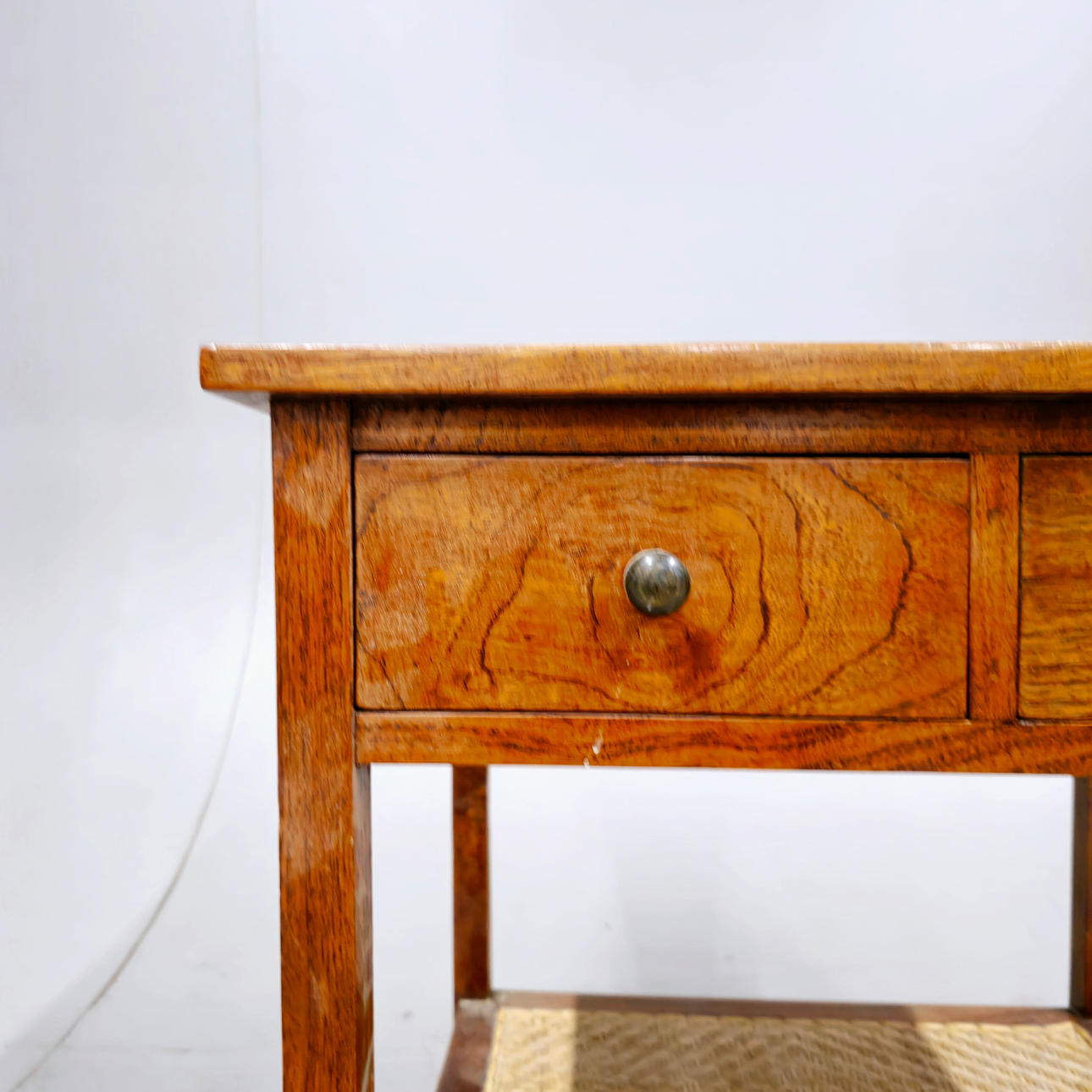 4420511. SIDE TABLE. WOOD. BRAIDED VEGETABLE FIBER SHELF.