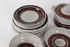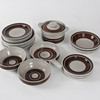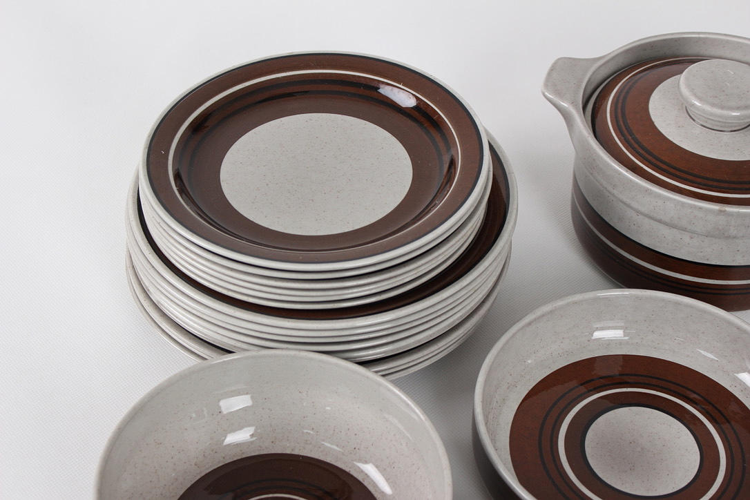 Carott and bowl, dia. 19 cm, terrine, 24 cm, 8 pcs, plates, dia. 18 cm, 8 pcs. plates, he. 20 cm, 6 pcs. plates, he. 20 cm, 9 pcs. plates, he. 24 cm.