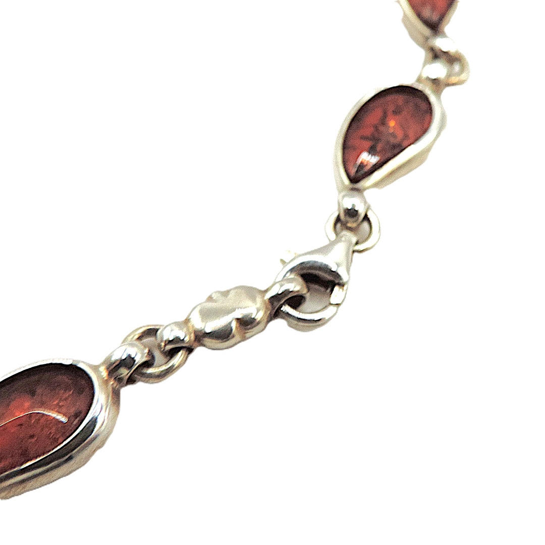 A fine quality sterling silver necklace 17.5 inches long set with 21 x 11.5mm Amber gemstones.