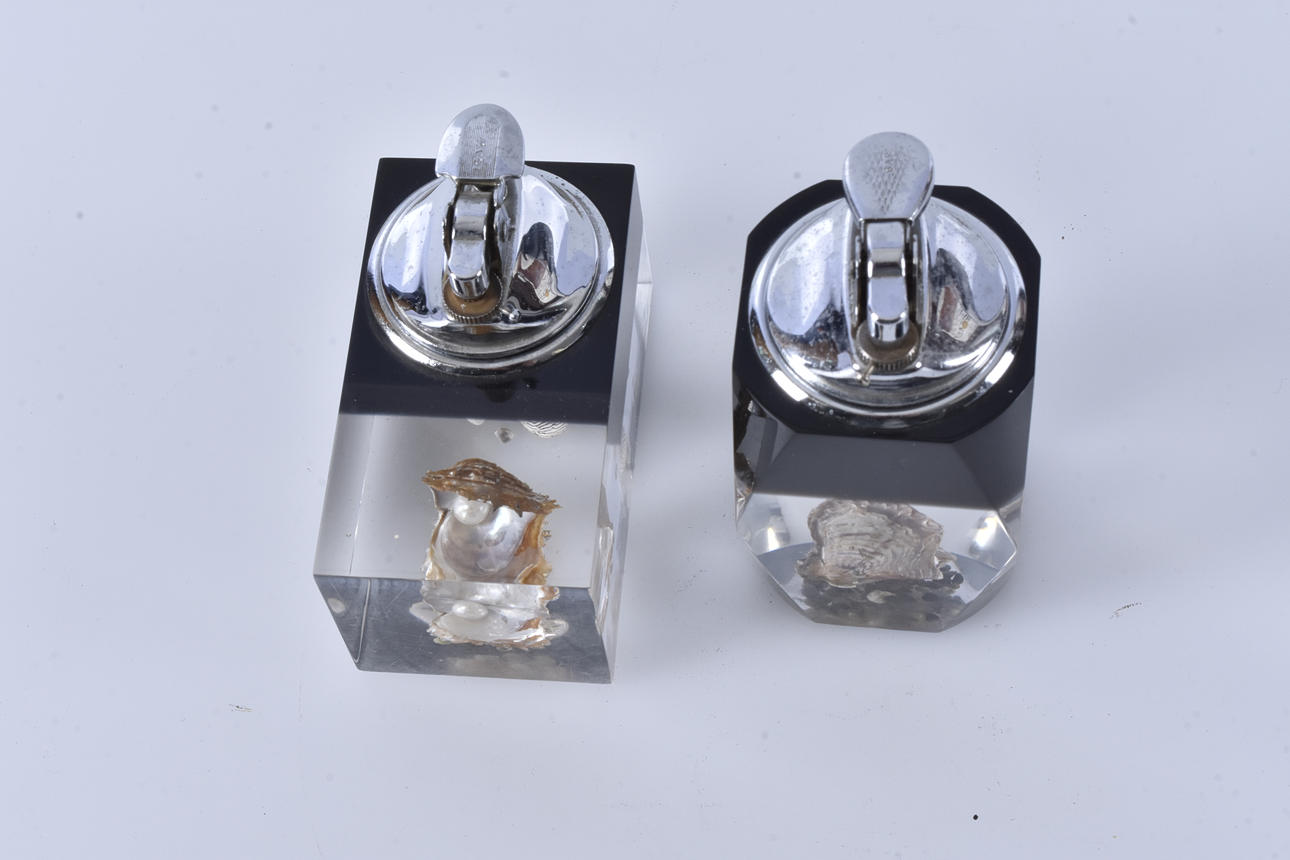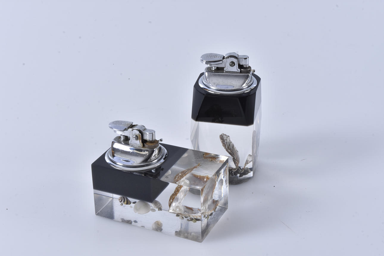 4421030. Table lighters with moulded shells, 2 pieces, 20th century.