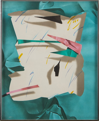 YRJÖ EDELMANN. Composition with package, lithograph in colours, signed Y. Edelmann, numbered 1343/1500.