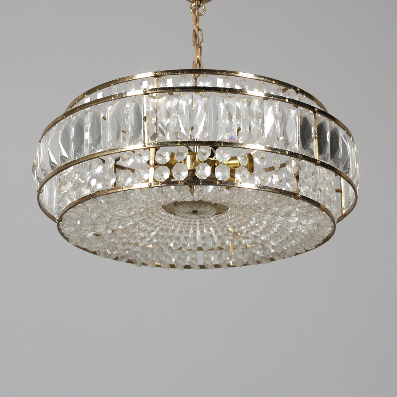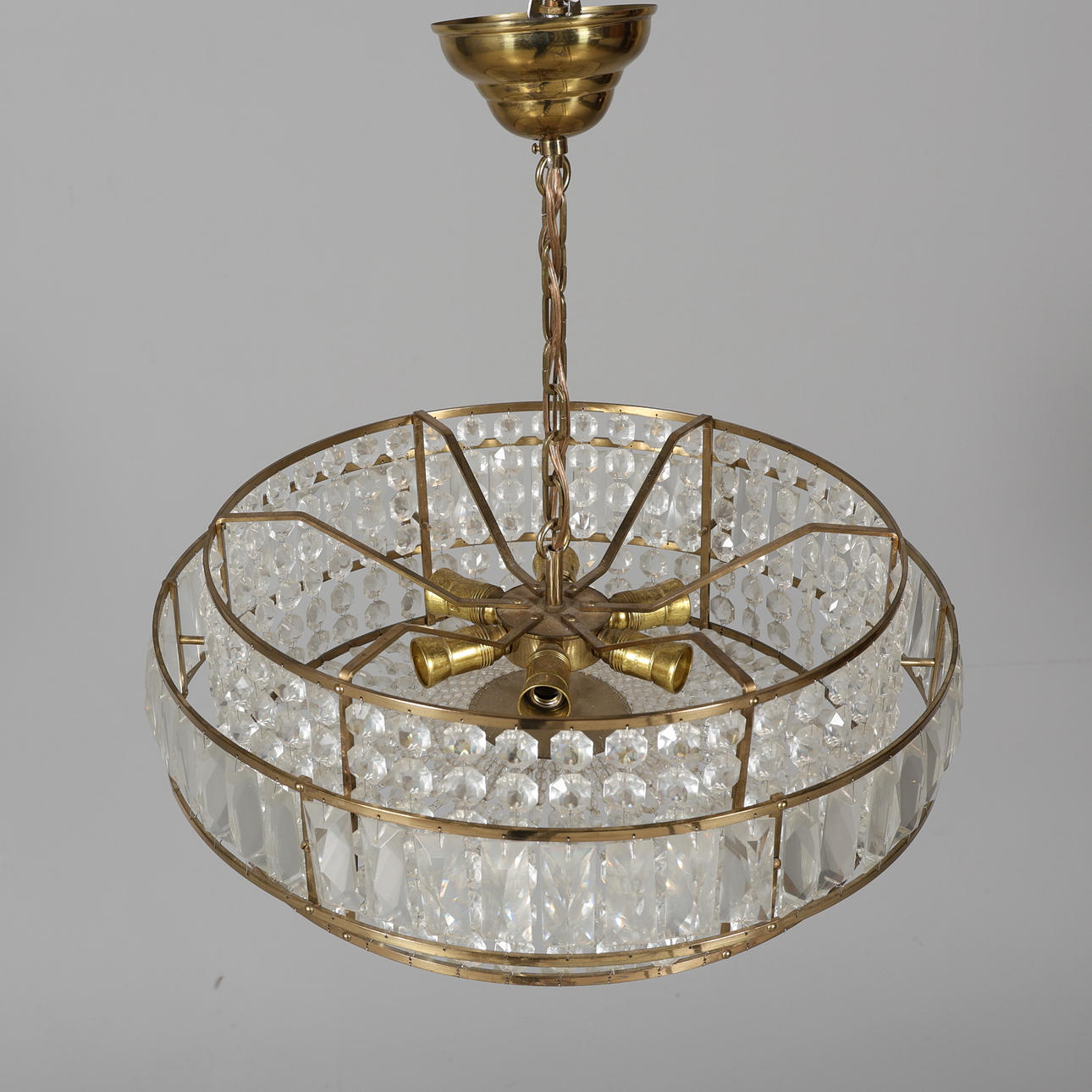 4421496. A metal ceiling lamp and prisms, 20th century.