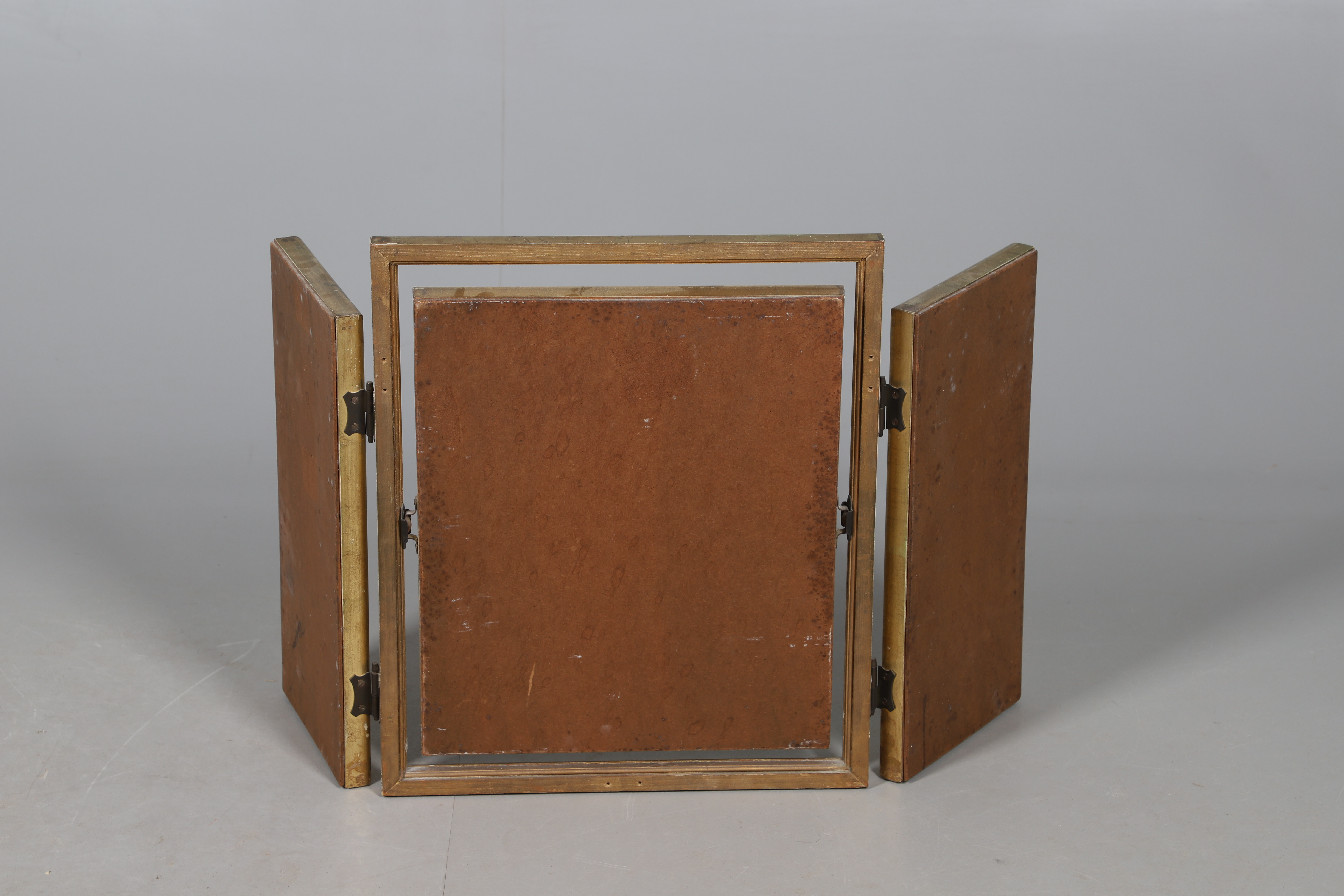 4421975. A MODERN GILT FRAMED FOLDING DRESSING TABLE MIRROR.
