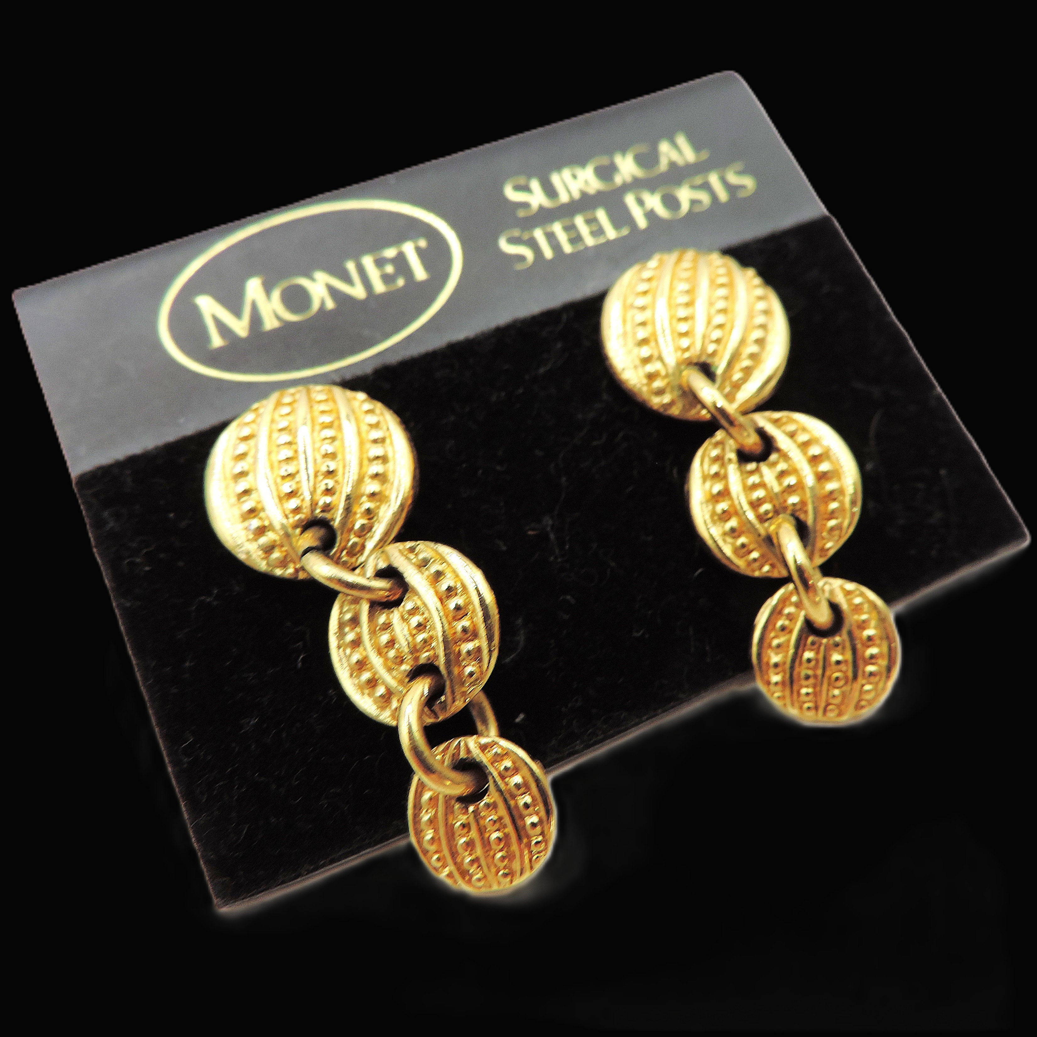 4422894. SIGNED MONET GOLD PLATED DROP EARRINGS.