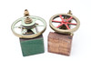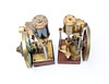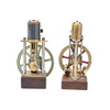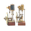 each with a spoked painted bronze flywheel, the largest height 18cm, fly wheel diameter 11cm (2).