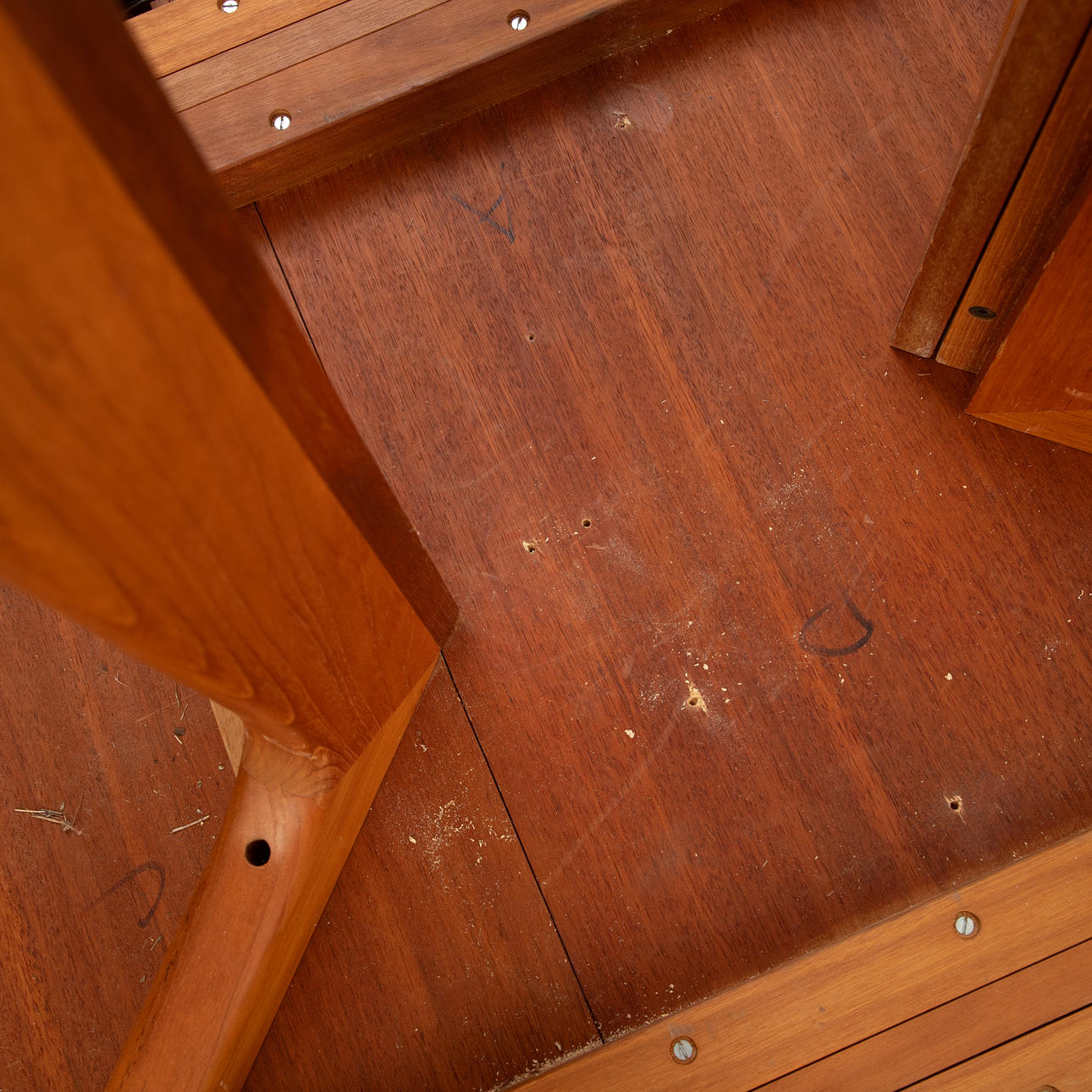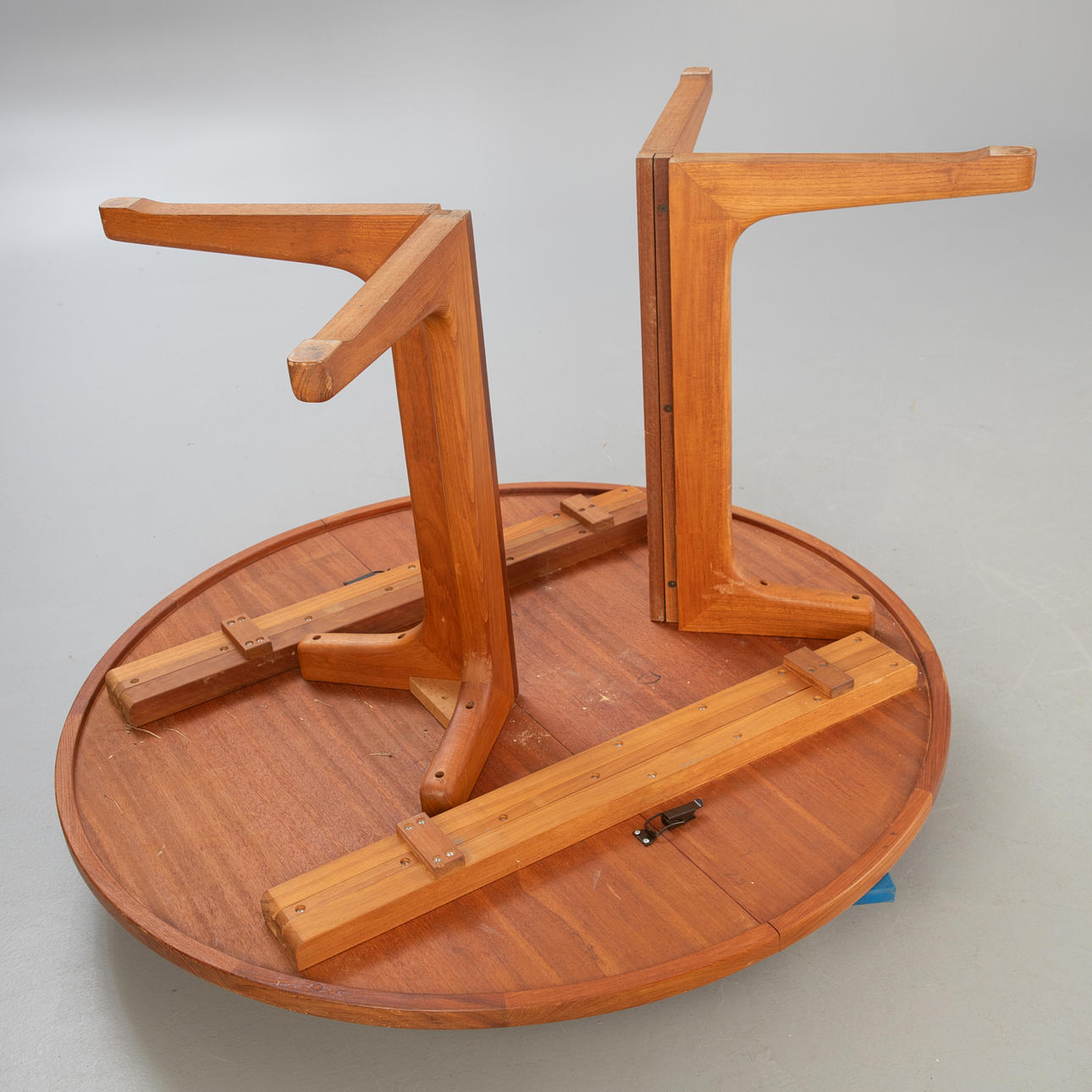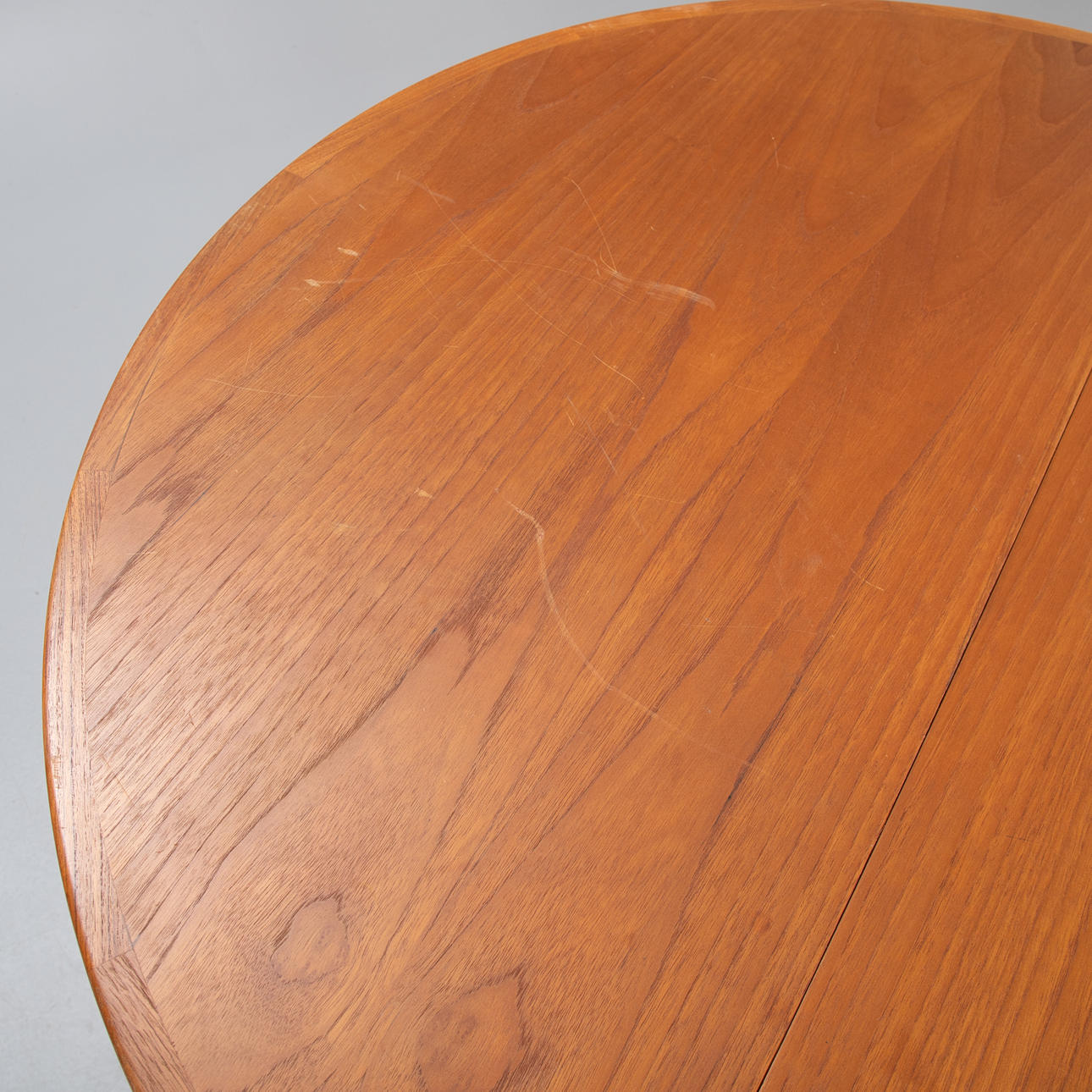 Teak wood, veneered table top. 1 extension plate available B. ca. 52 cm