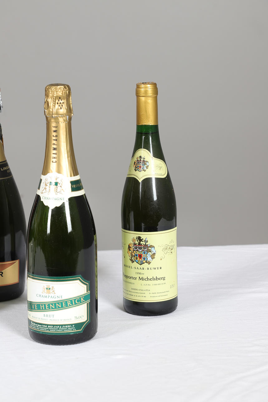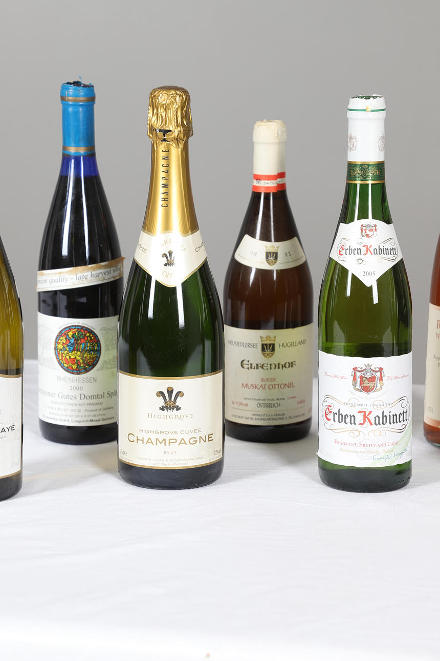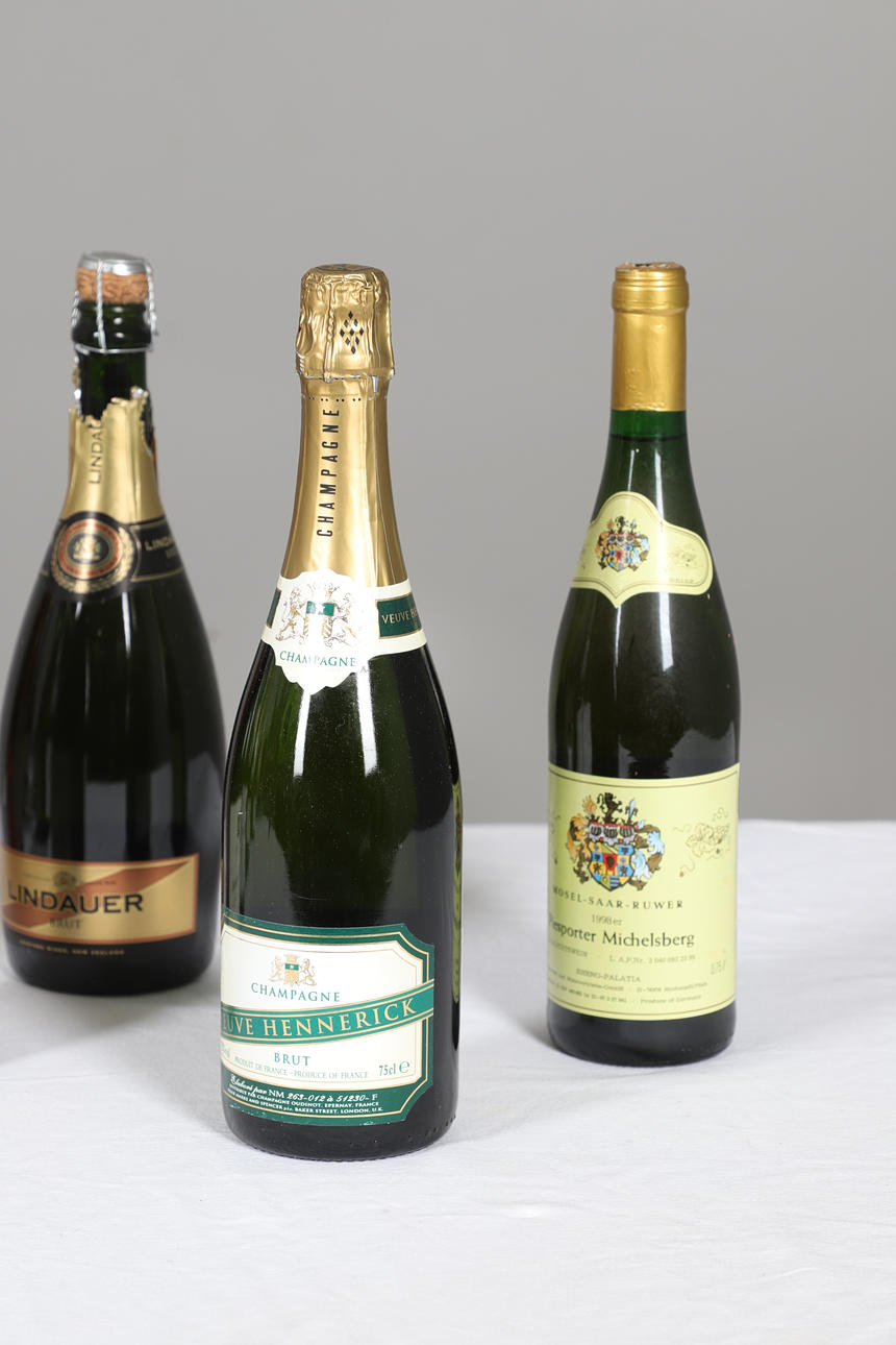 To include a bottle of Veuve Hennerick Champagne, a bottle of Highgrove Cuvee Champagne, a Lindauer Brut bottle of sparkling wine and other assorted wine and champagne bottles. ***PLEASE NOTE AUCTIONET CANNOT ASSIST WITH THE SHIPPING OF THIS LOT***.