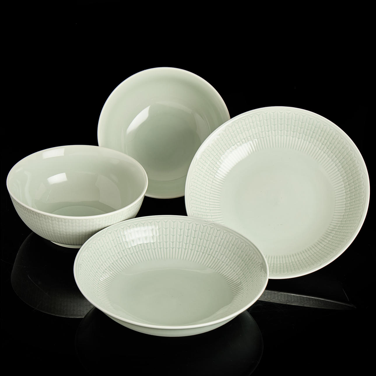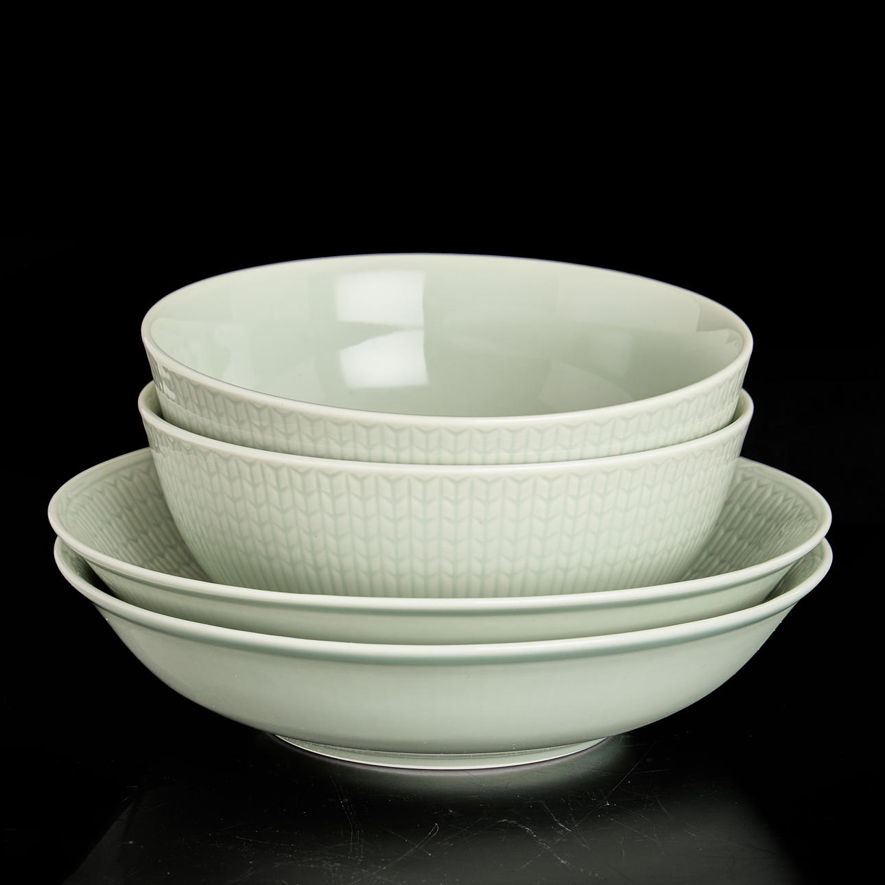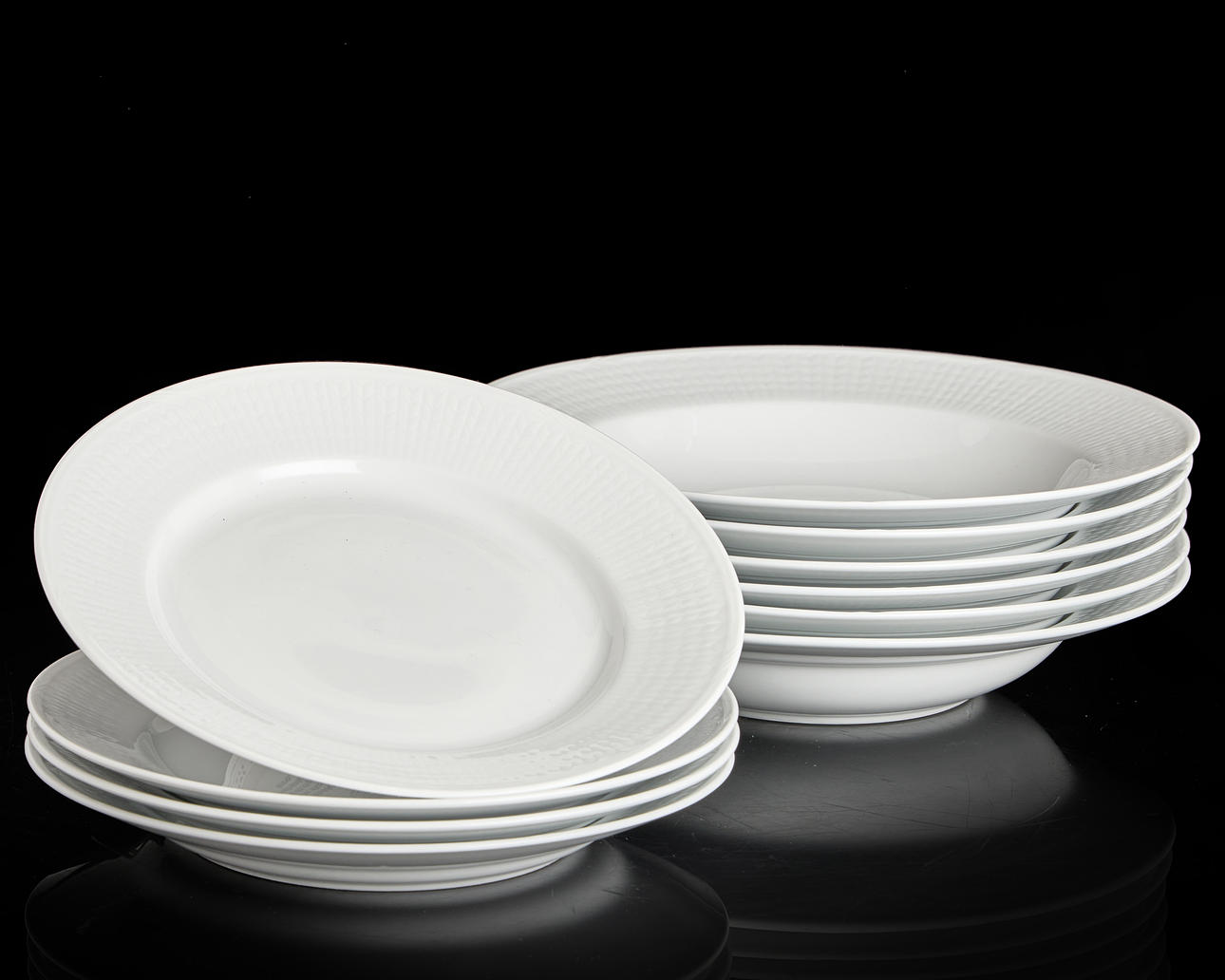 2 bowls, diameter 15 cm 2 bowls, diameter 19.5 cm 4 barrels, diameter 21.5 cm 6 deep plates, diameter 25 cm.