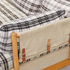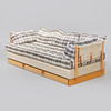 Frame in book. Linen fabric and leather details. Length 200, depth 90, height 65, seat height 44 cm.