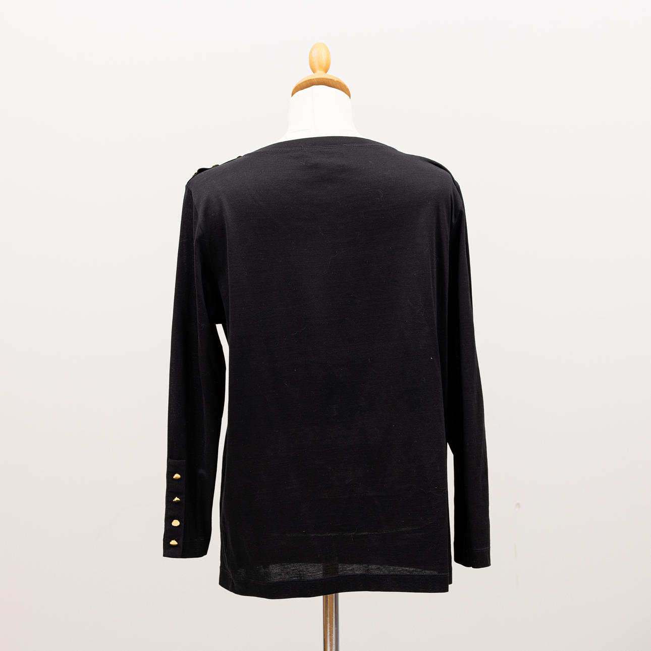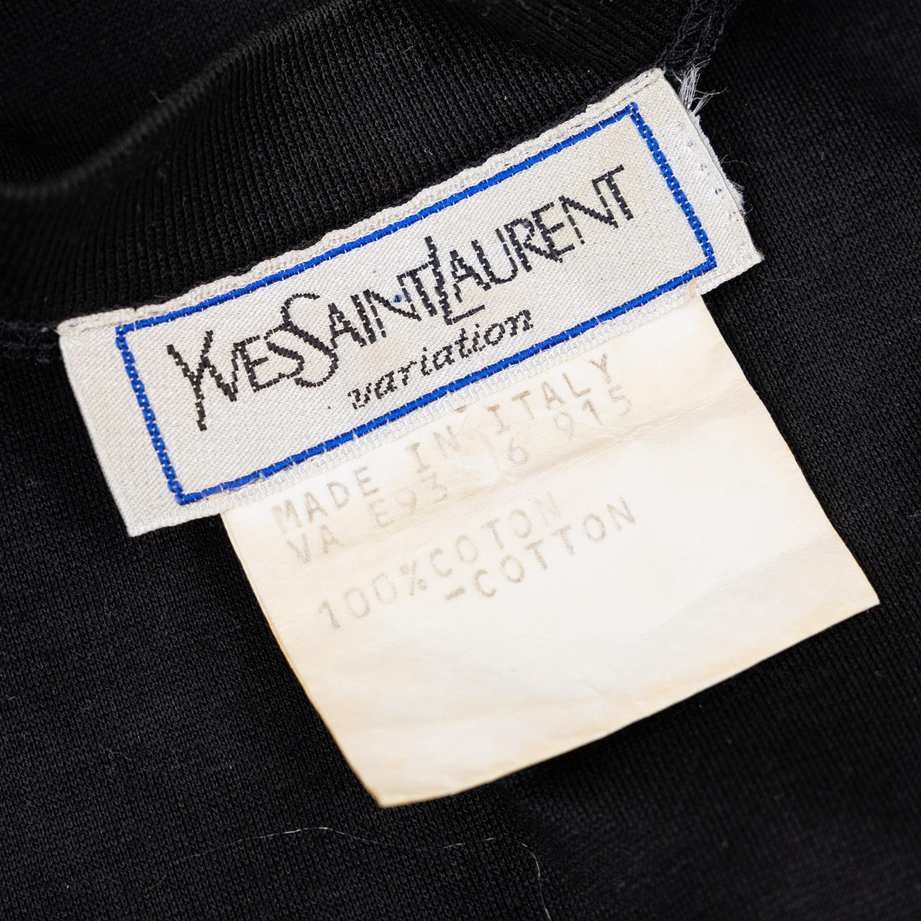 Black cotton with gold-colored buttons and embroidery on the chest “Yves Saint Laurent”.
