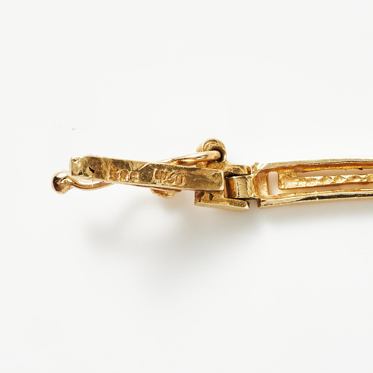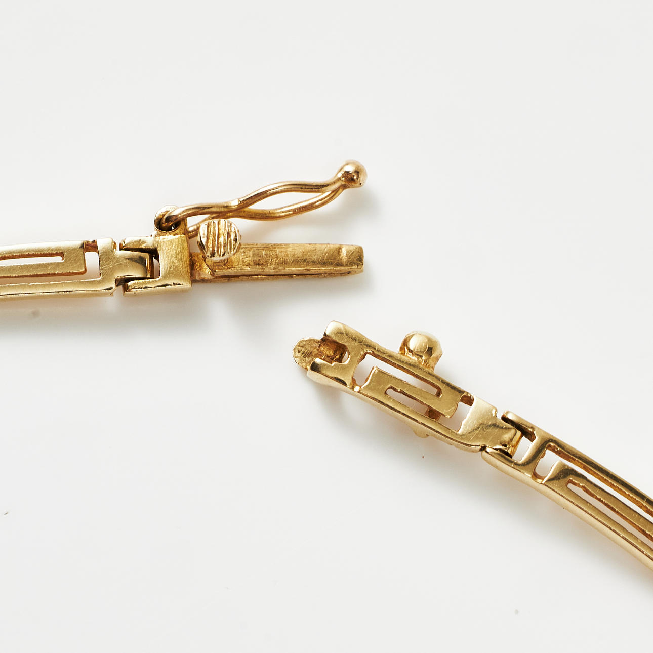 NECKLACE, 14k gold, meander loop, foreign stamps.