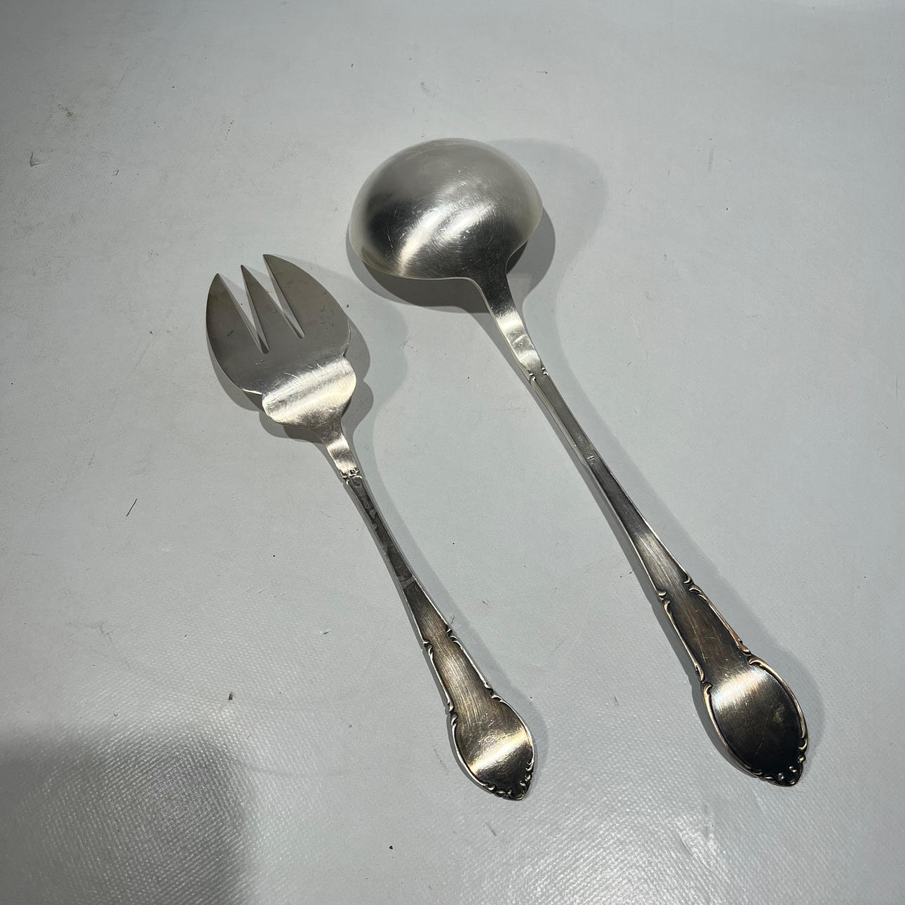 4424365. 2-piece silver alpaca serving set. Ladle and large fork.