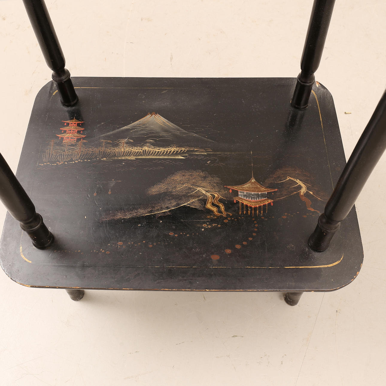 Height approx. 75 cm, approx. 50 x 36 cm. Tray approx. 54,5 x 32 cm. Box in the sarge.