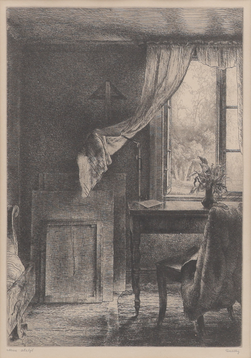 4424756. FOLKE GULLBY. ETCHING, “MY STUDIO”, SIGNED, EXECUTED 1942.