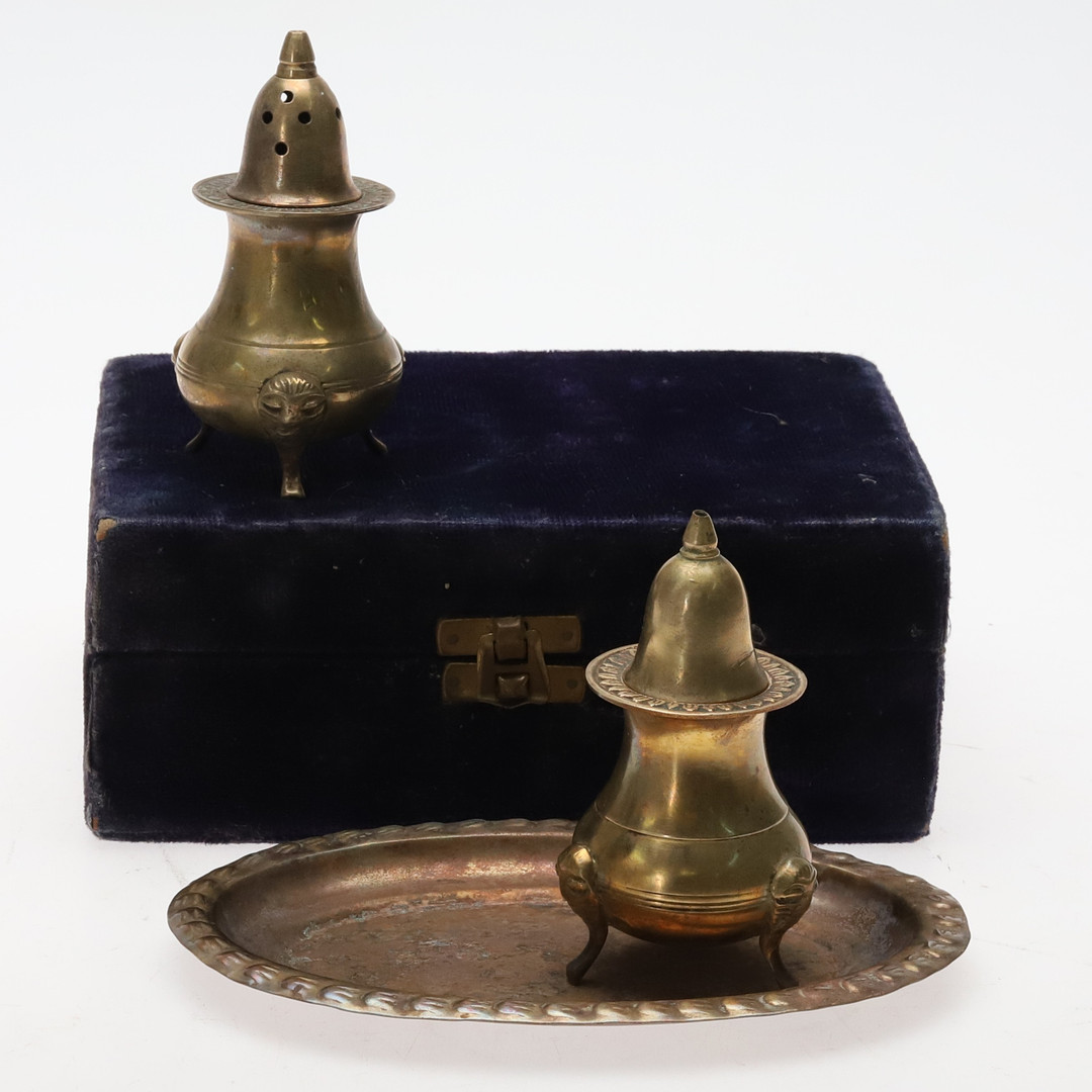 4424947. PLATTER & SPRINKLER, silver plated & patinated.