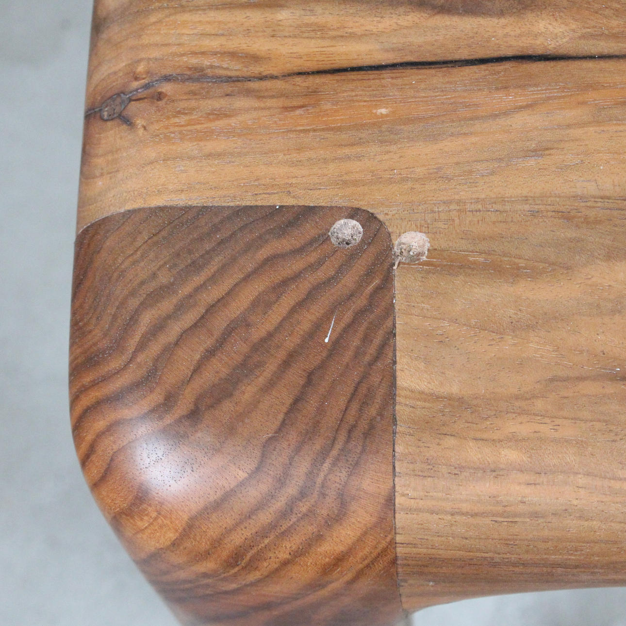 Age-appropriate signs of use and rubbing, partial scratches and rubbing, two drill holes in a corner of the table top, one leg slightly crooked.