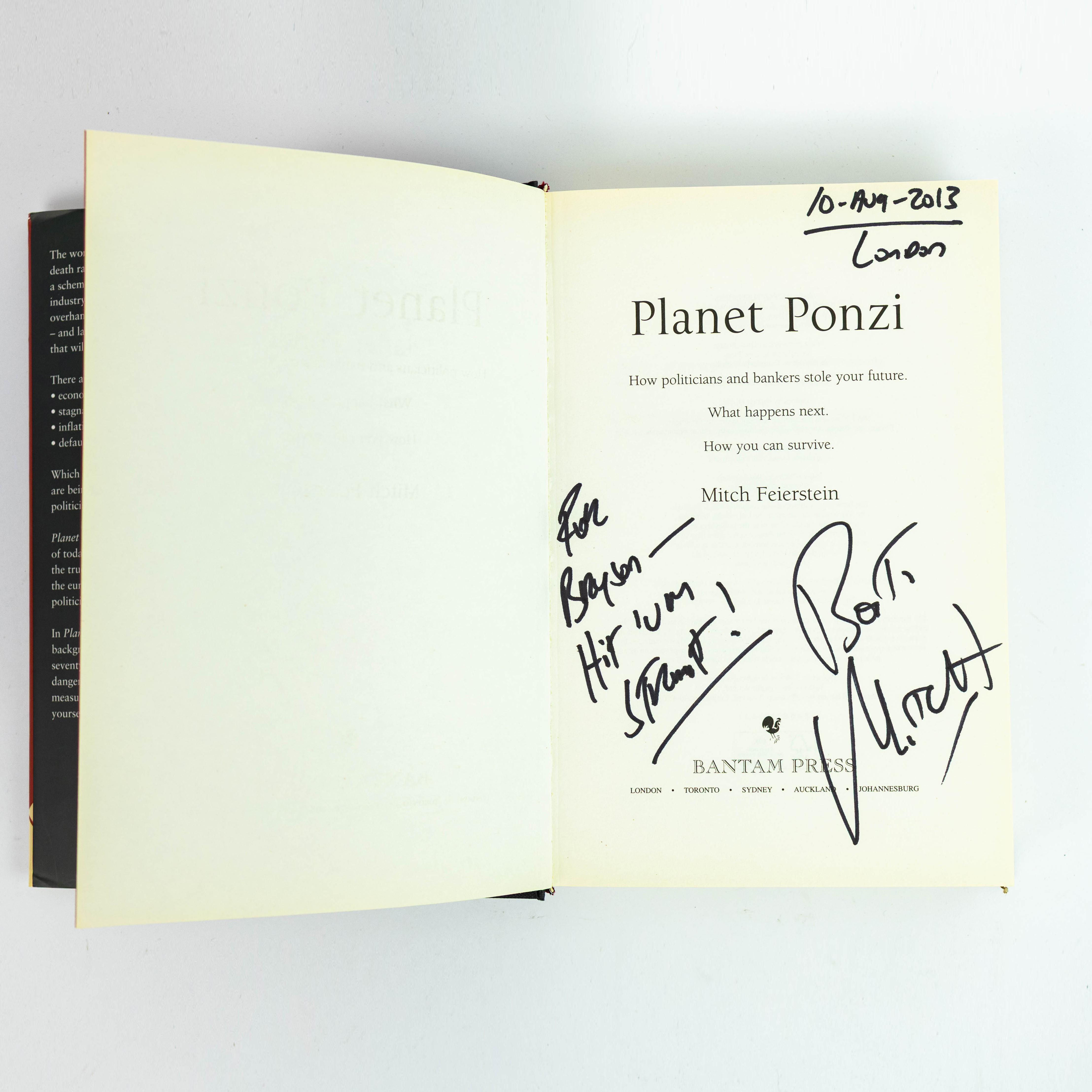 4425076. FEIERSTEIN, MITCH. PLANET PONZI, 1ST EDITION, SIGNED.