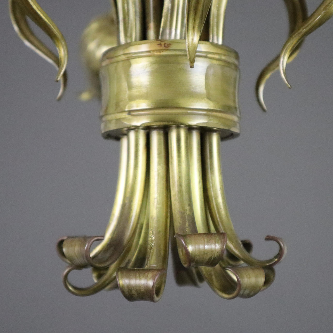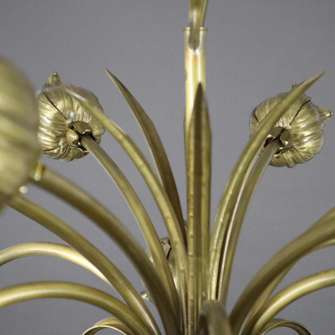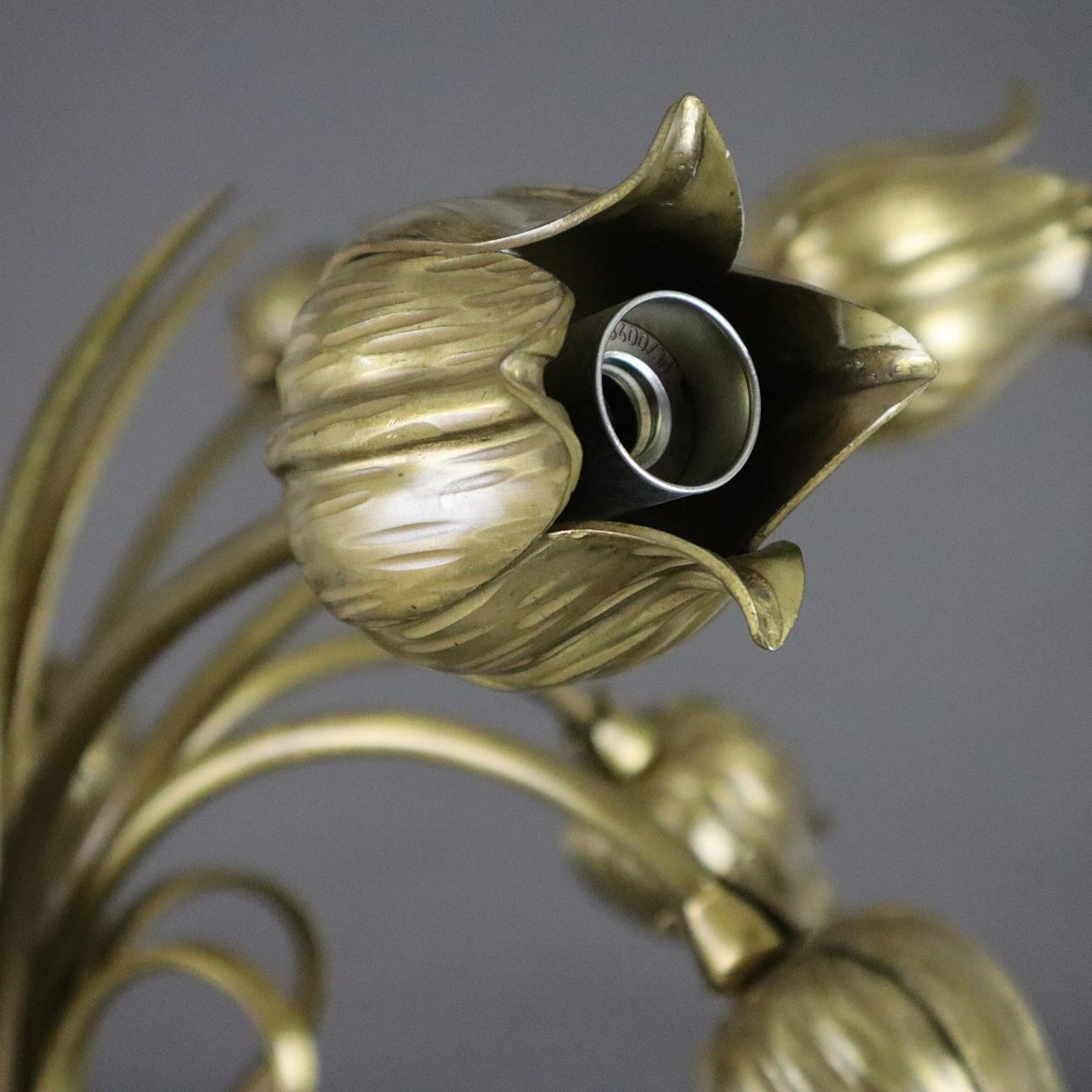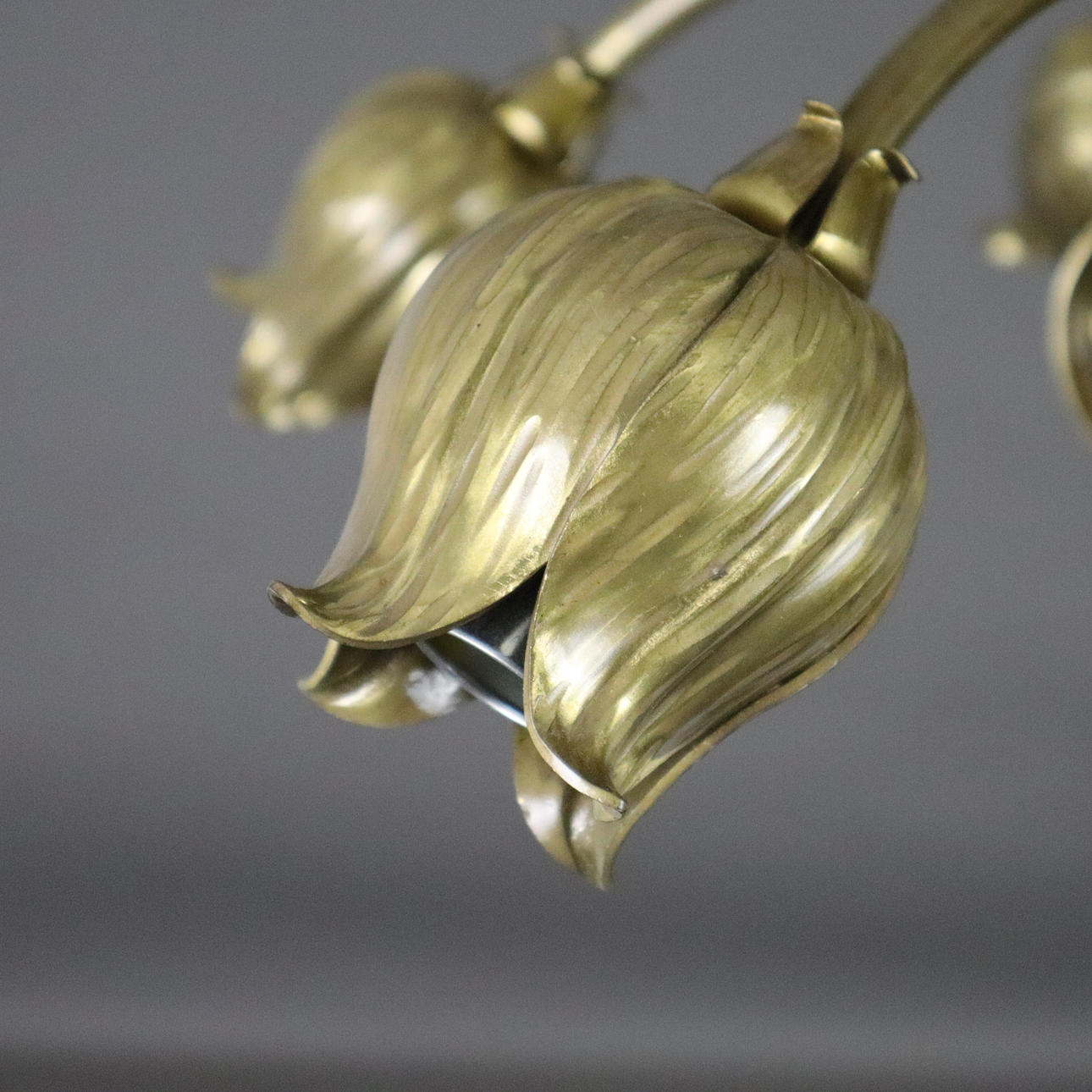 Brass frame with 12 vegetable arms with tulip flowers as light bulb holders, 12 bulbs electrified (75 W each), H.xd.ca.62x57cm.