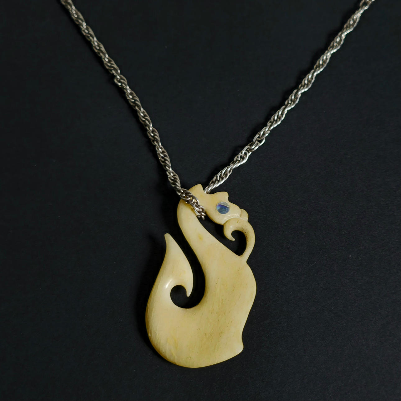 DRAGON PENDANT IN BONE WITH SILVER CHAIN.