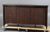Piece appears to have previously had a top section which is no longer present, vertical splits to two of the panelled cupboard fronts, Some later screws visible to the back, surface rubbing, scratches and marks.