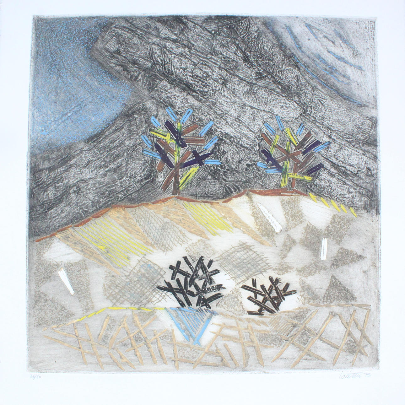LOUTTRE.B (1926-2012), etching, “Terre á cactées” limited 33/60, signed. Dimensions: 75 x 57.5.
