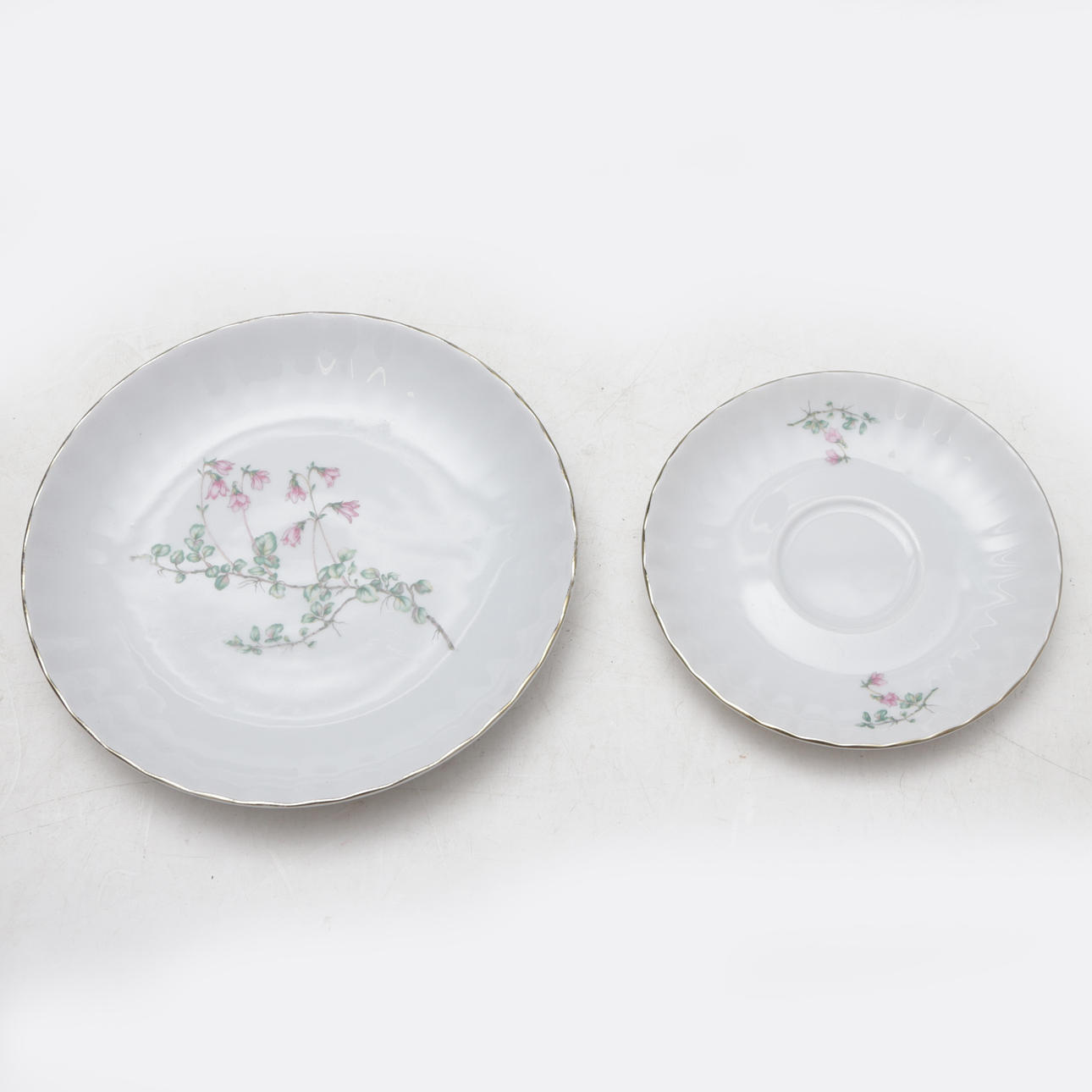 jug, sugar bowl, cream jug, cups with saucers 9 pcs, extra 2 pcs, side dishes 10 pcs.