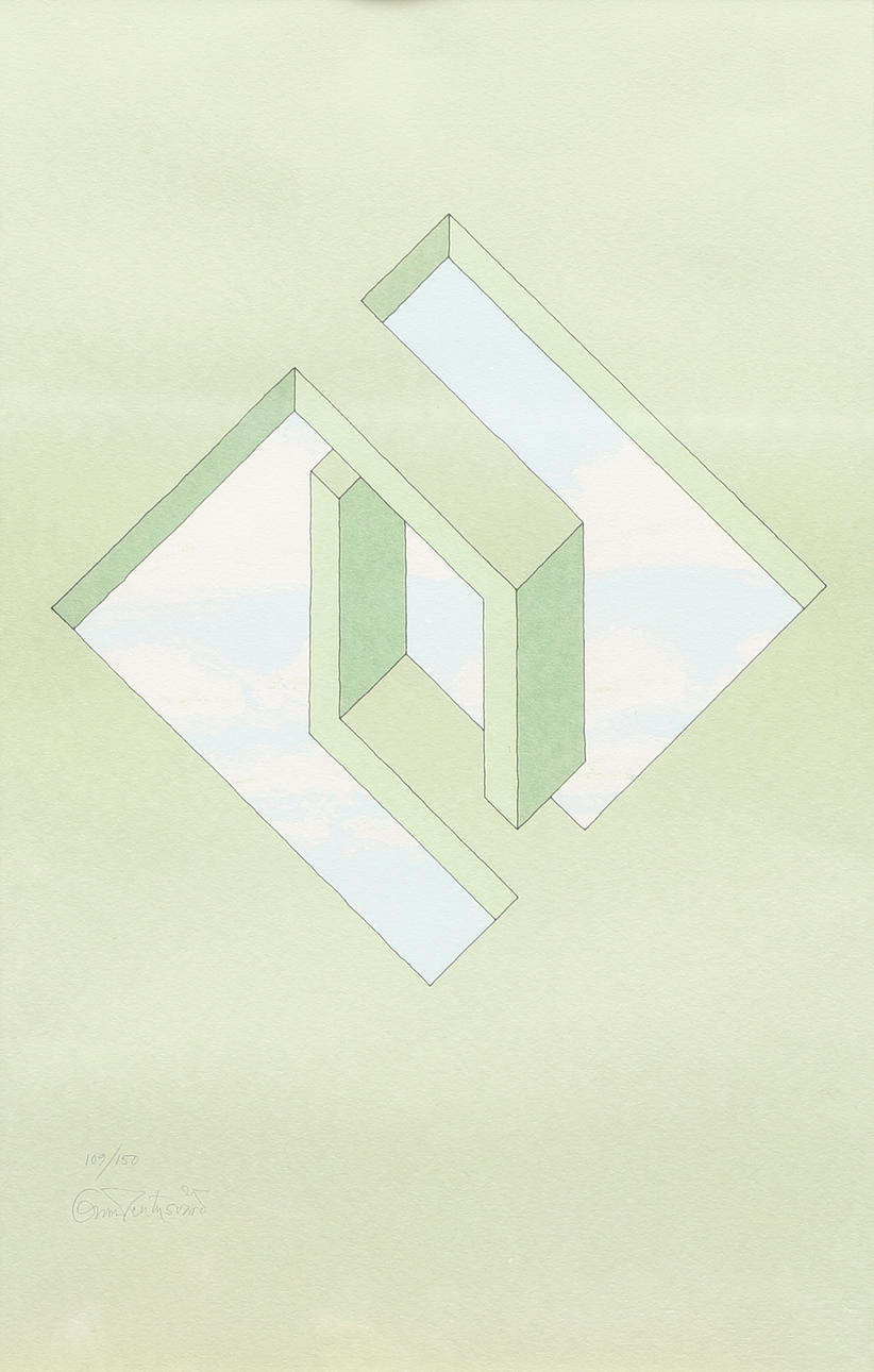 OSCAR REUTERSVÄRD. Lithograph in colours, 2 pcs, Impossible figure, signed, numbered 109/150 & 75/150.