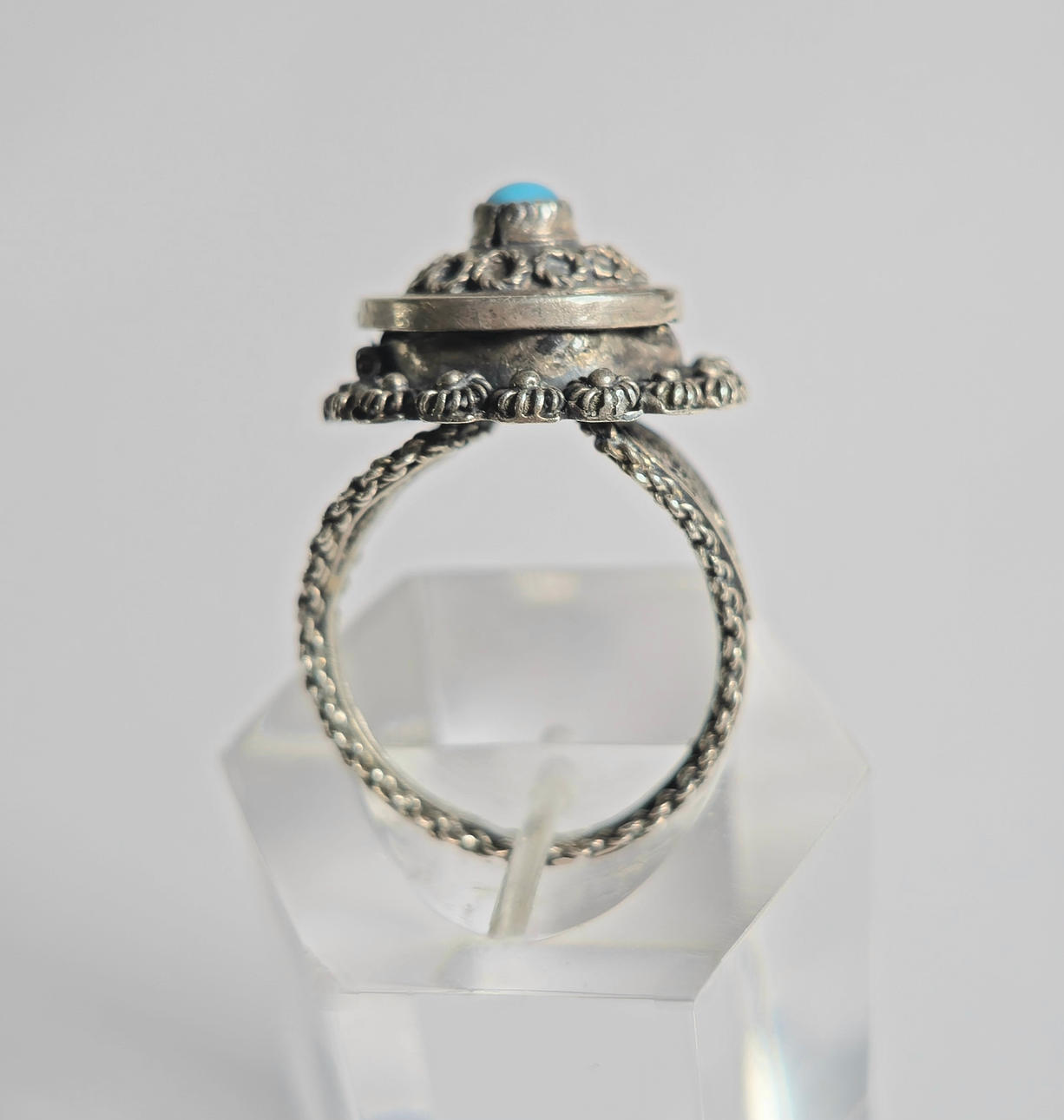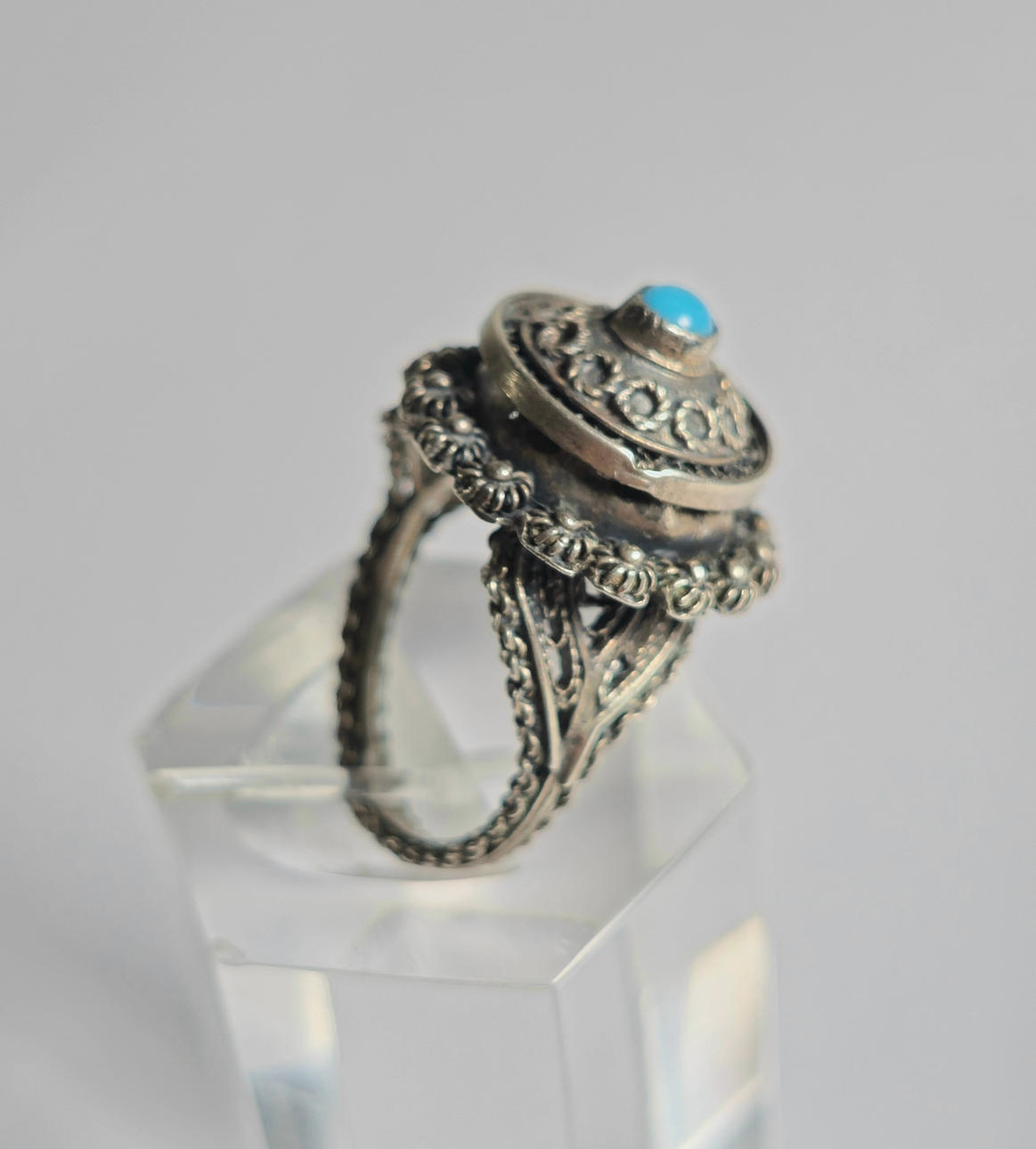 4426281. FILIGREE AND TURQUOISE STERLING SILVER RING. INNER BOX.