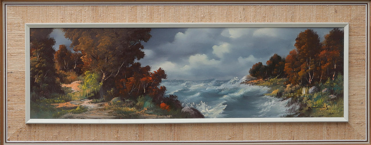Approx 29x100, with wooden frame approx. 46x117 cm. Approx 88x25, with wooden frame approx 105x41 cm. Approx 29x99, with wooden frame approx. 47x118 cm.