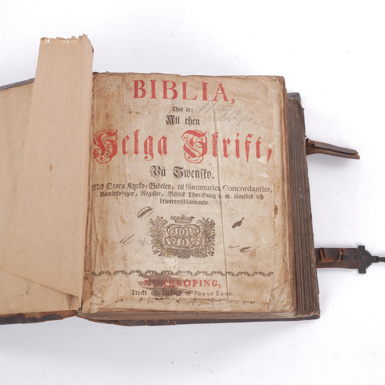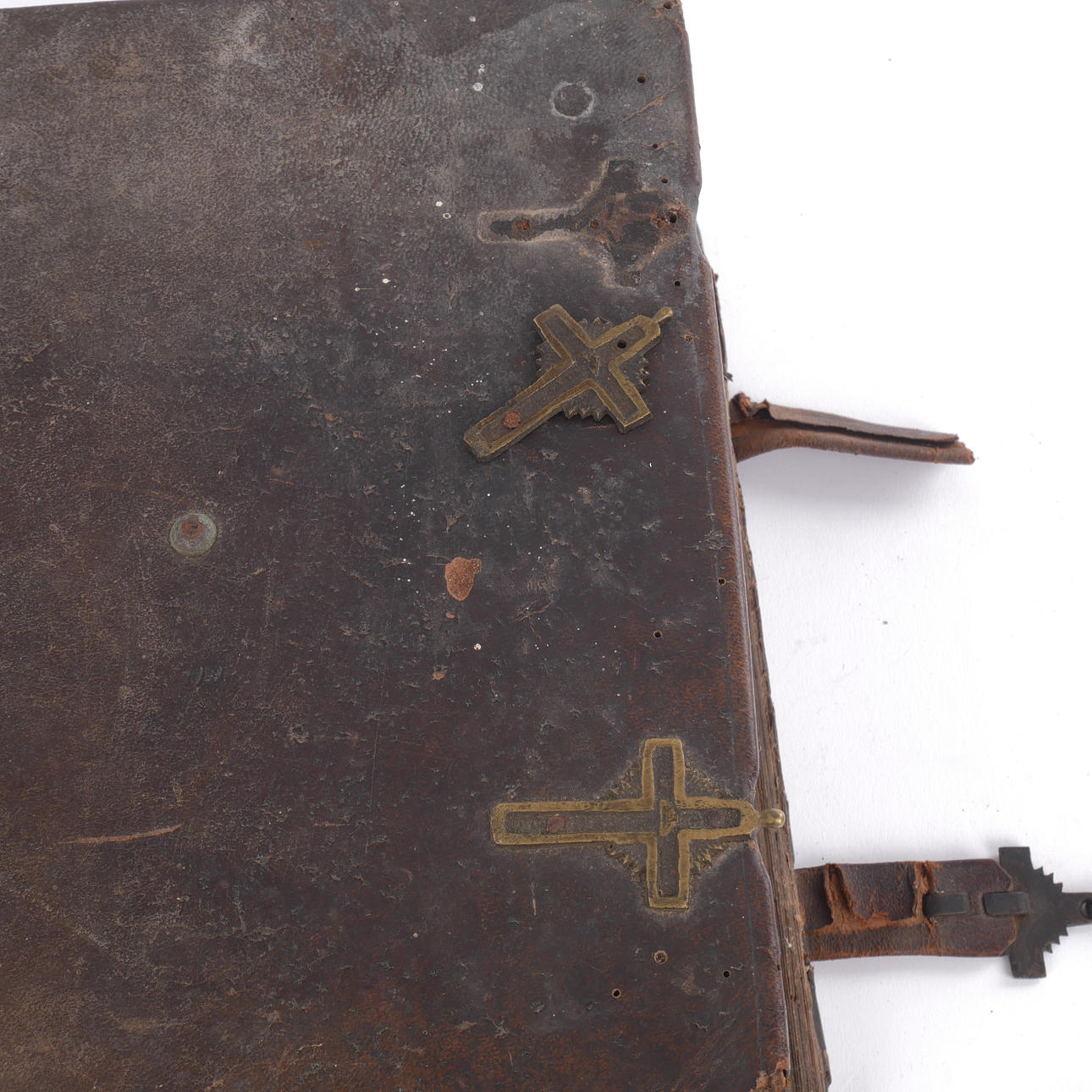 Use and age-related wear, moisture stains. A clasp in the form of a cross is loosely supplied. A few leaves with minor damage.