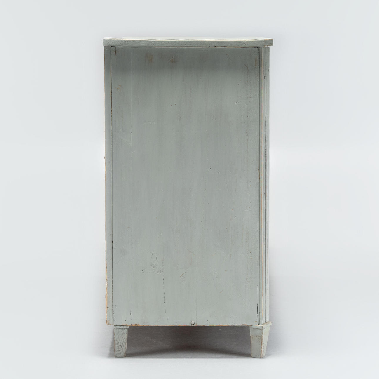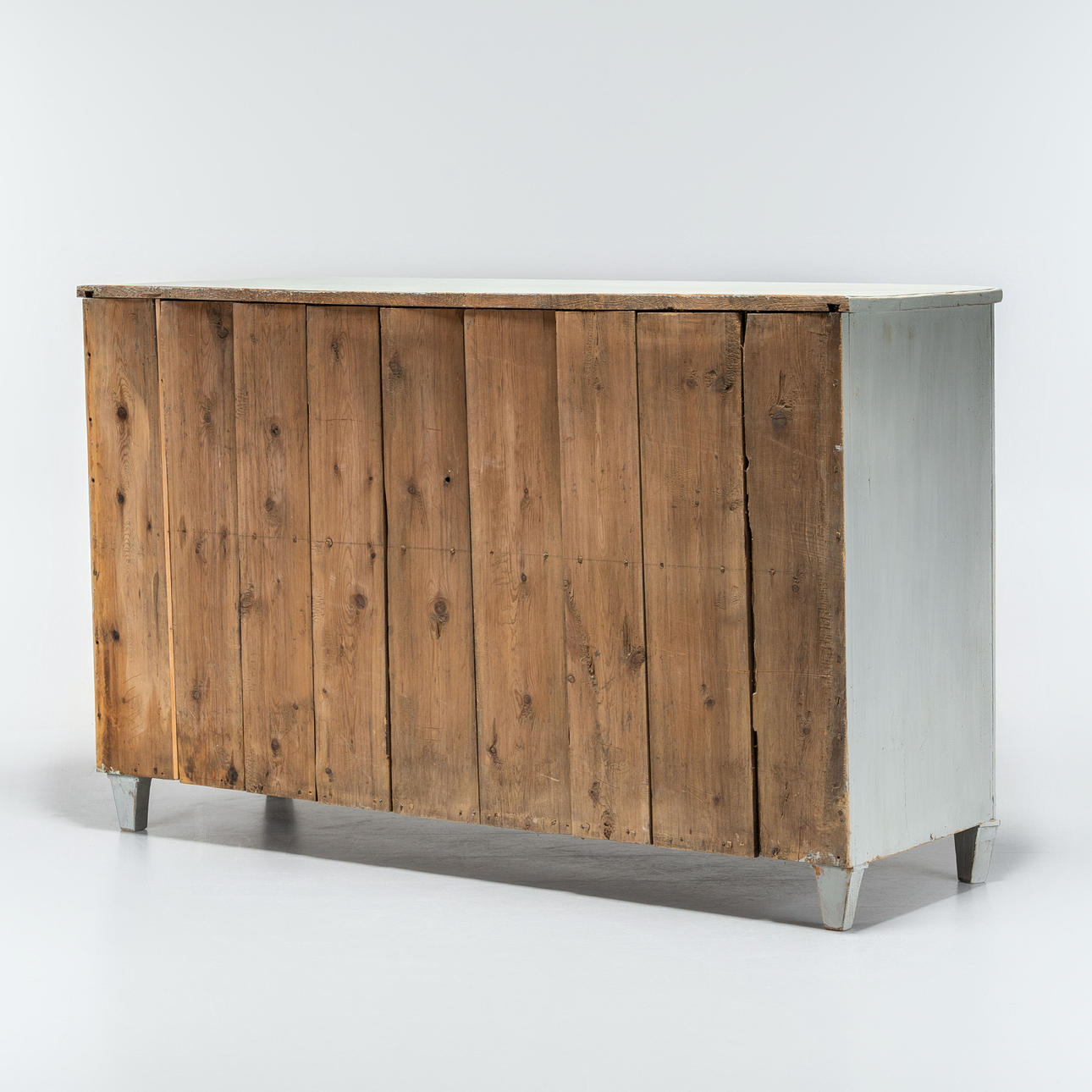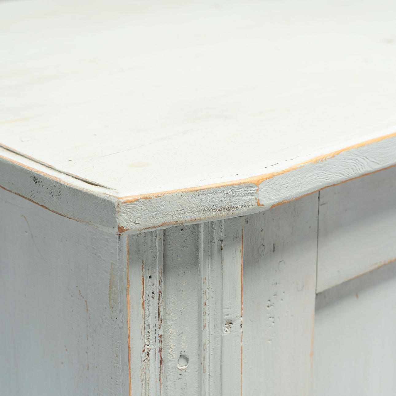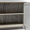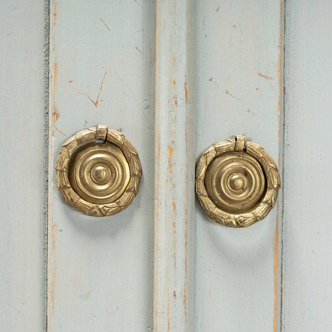 Brass pull bracket with wreath, painted in linen grey with a slight undertone of grey-green/beige