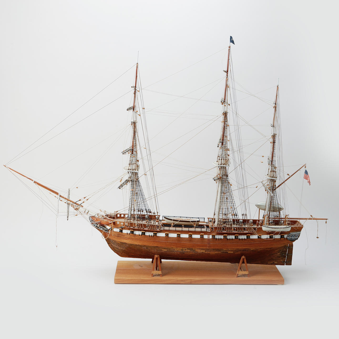 4427185. SHIP MODEL, full rig, wooden construction with copper undercarriage.