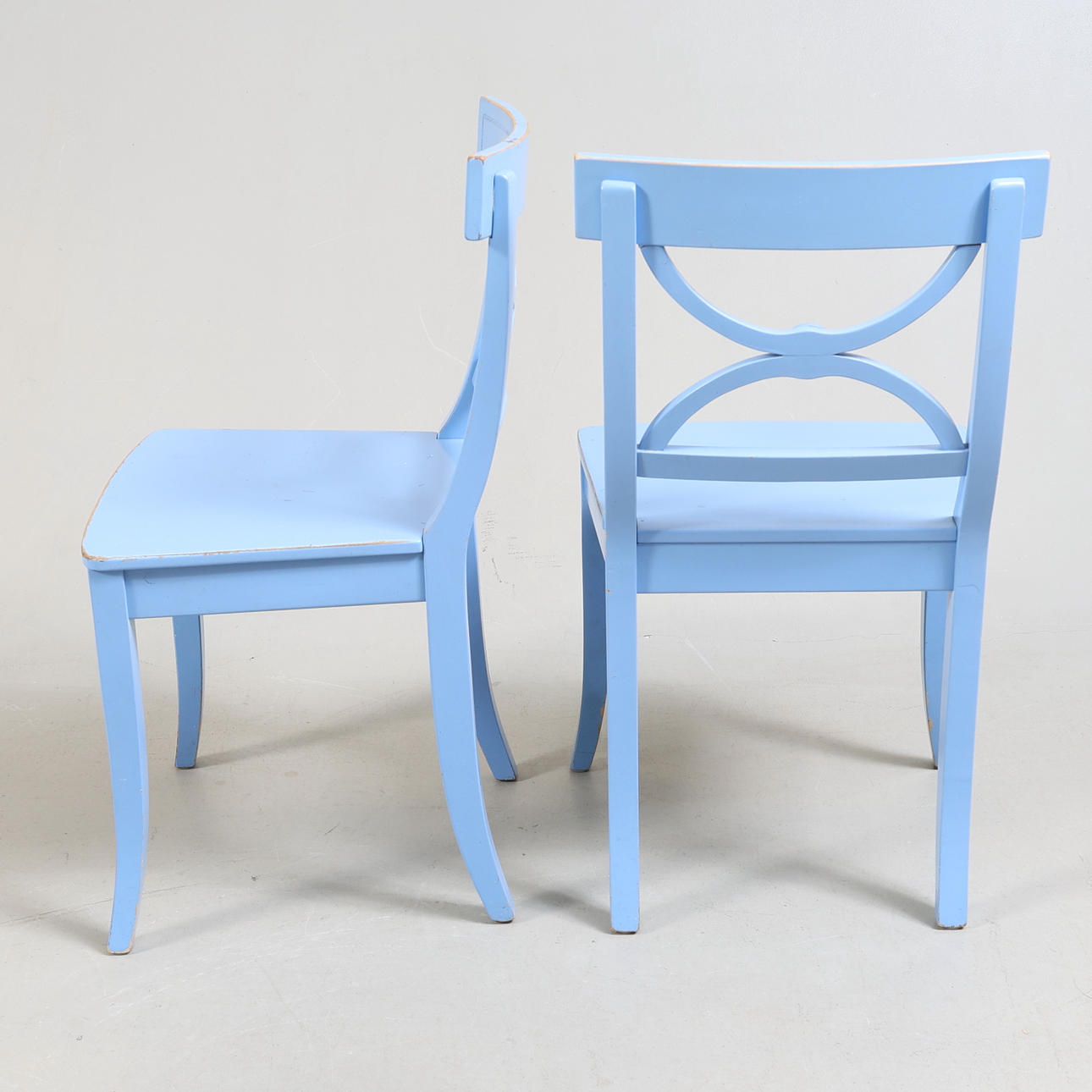 Chairs with attached backrest Backrest height 87, seat height 46,5, width 48 cm.