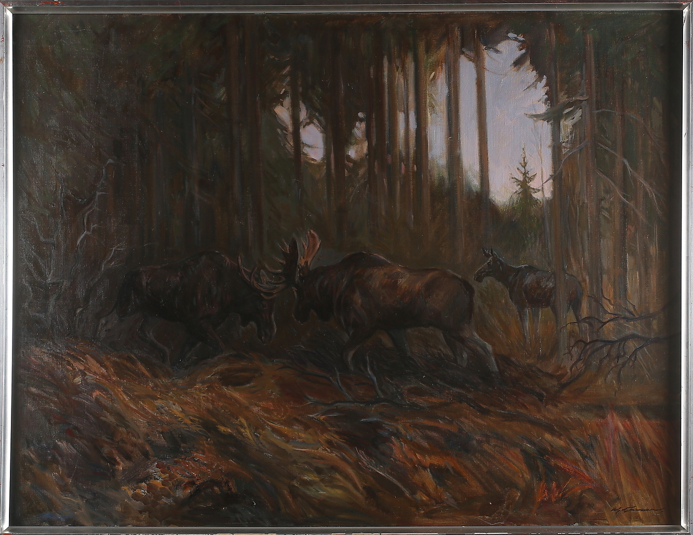 442760. OIDENTIFIERAD KONSTNÄR. Stagnant Moose, oil on canvas, signed Göransson.