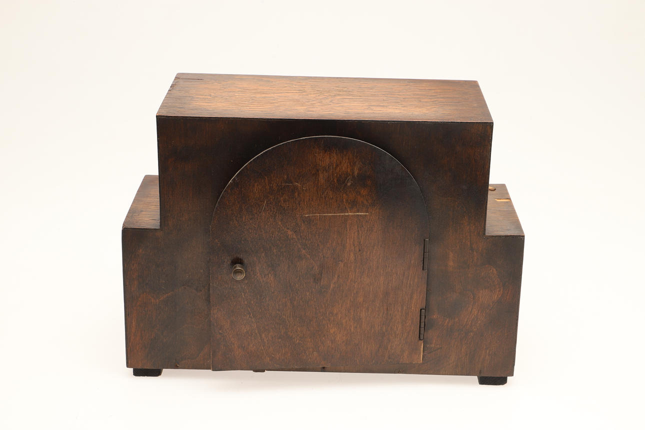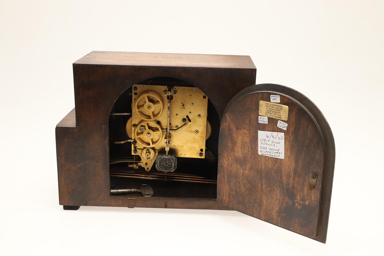With silent/chime selector. With key and pendulum. Height 22cm, width 30cm.