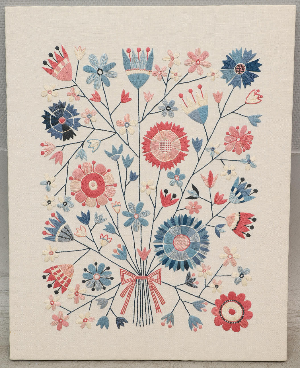 Textile paintings, approx. 15x15-64x51 cm. Tablecloths, curtains, etc. Different sizes & motifs.