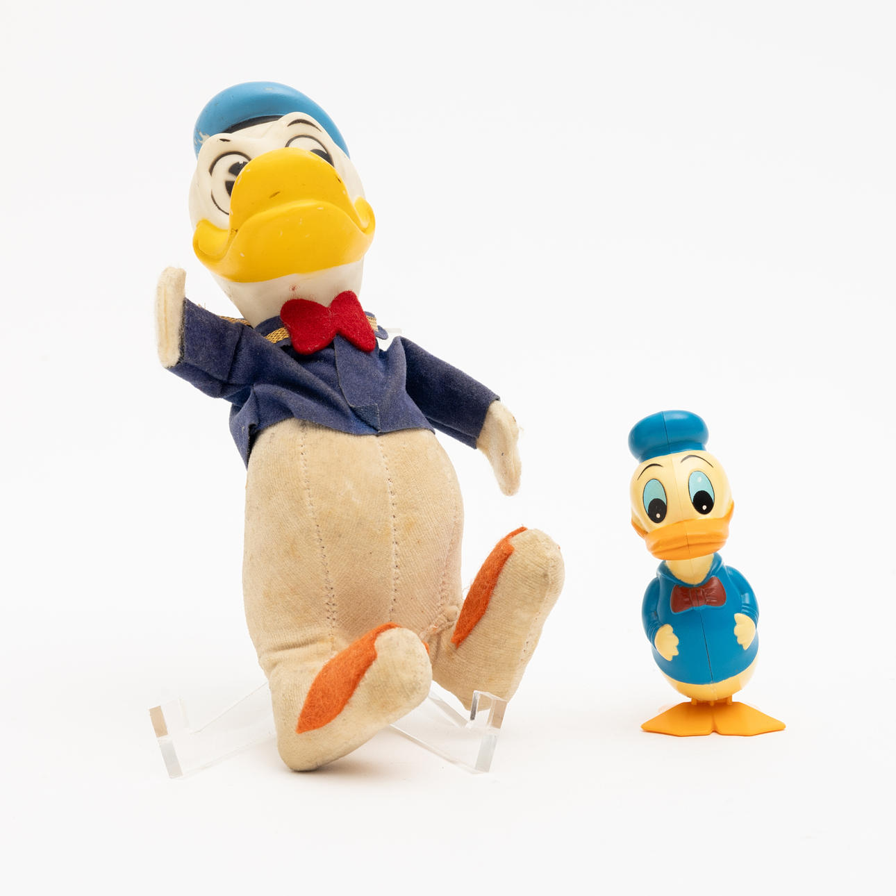 Donald Duck, hard plastic, mechanical, Walt Disney Tomy Taiwan, height 8 cm.