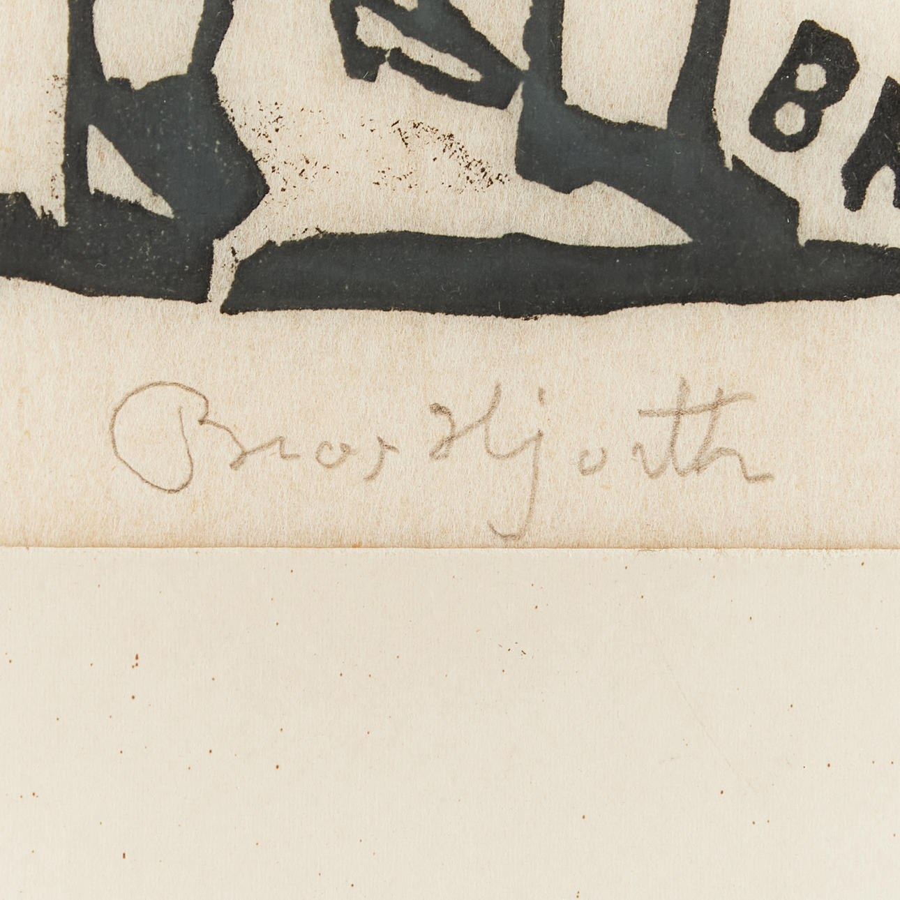 BROR HJORTH. Figure scene, woodcut, signed.