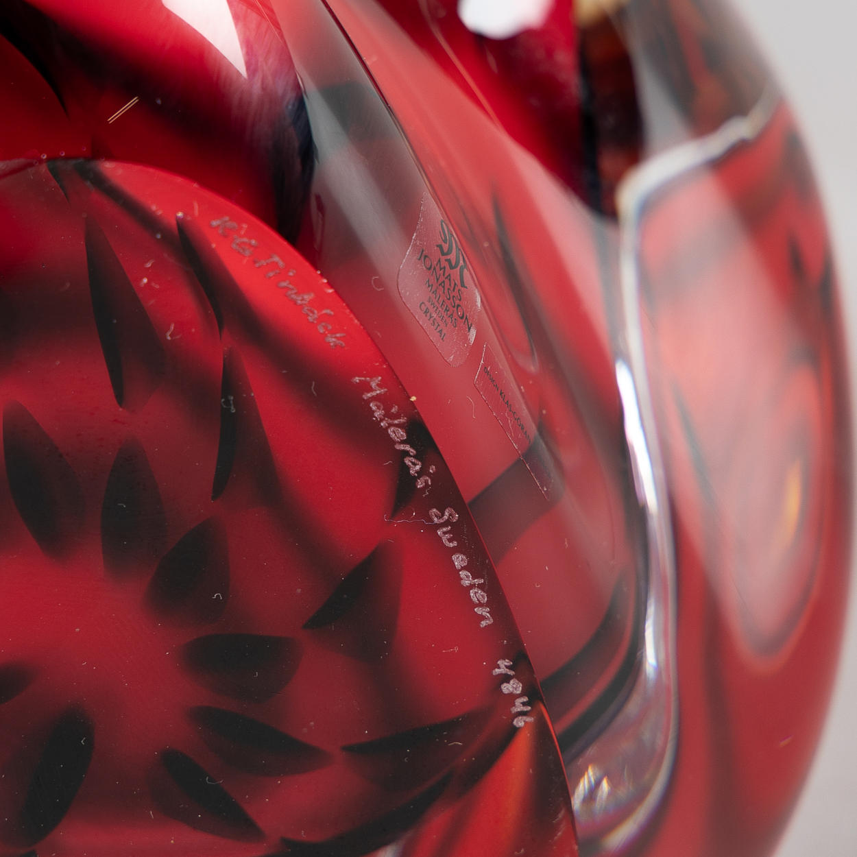 KLAS-GÖRAN TINBÄCK. Vase, glass, signed, Målerås.
